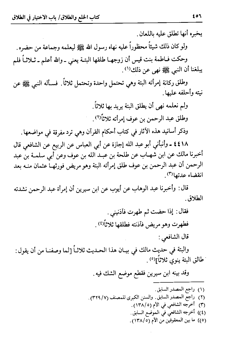 قال : وأخبرنا عبد الوهاب عن أيوب عن ابن سيرين أن امرأة عبد الرحمن نشدته الطلاق.