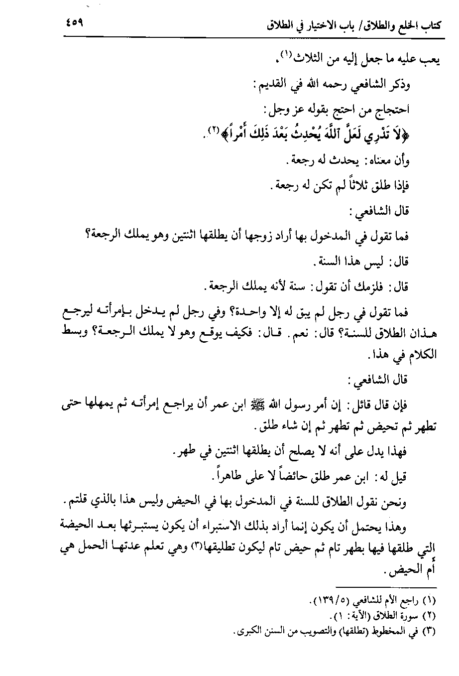 قال الشافعي فإن قال قائل : إن أمر رسول الله صلى الله عليه وسلم ابن عمر أن يراجع امرأته ثم يمهلها حتى تطهر ثم تحيض ثم تطهر ثم إن شاء طلق.