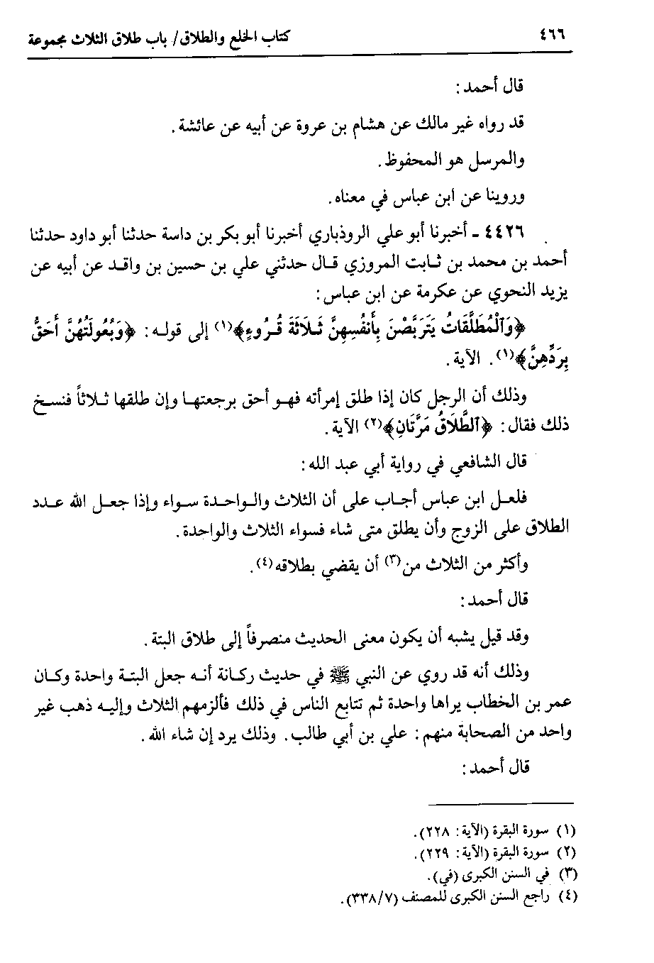 4426 - أخبرنا أبو علي الروذباري أخبرنا أبو بكر بن داسة حدثنا أبو داود حدثنا أحمد بن محمد بن ثابت المروزي قال حدثني علي بن حسين بن واقد عن أبيه عن يزيد النحوي عن عكرمة عن ابن عباس {والمطلقات يتربصن بأنفسهن ثلاثة قروء} إلى قوله : {وبعولتهن أحق بردهن} . الآية.