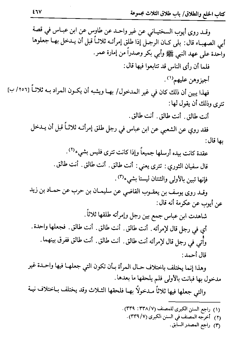 وقد روى أيوب السختياني عن غير واحد عن طاووس عن ابن عباس في قصة أبي الصهباء قال : بلى كان الرجل إذا طلق امرأته ثلاثاً قبل أن يدخل بها جعلوها واحدة على عهد النبي صلى الله عليه وسلم وأبي بكر وصدراً من إمارة عمر.