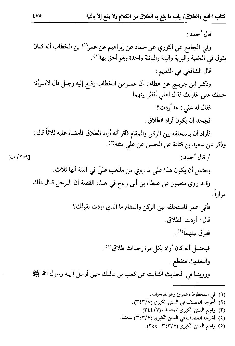 قال أحمد وفي الجامع عن الثوري عن حماد عن إبراهيم عن عمر بن الخطاب أنه كان يقول في الخلية والبرية والبتة والبائنة واحدة وهو أحق بها.