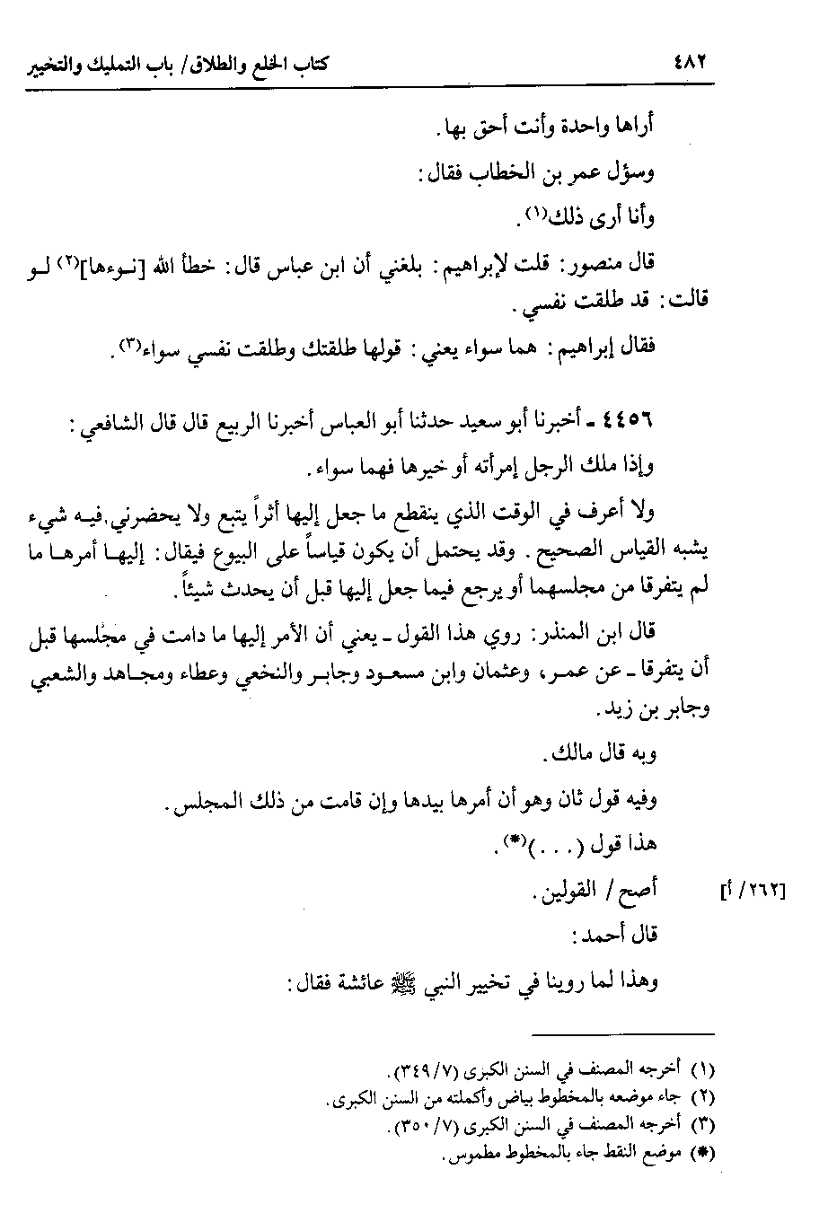 فقال إبراهيم : هما سواء يعني : قولها طلقتك وطلقت نفسي سواء.