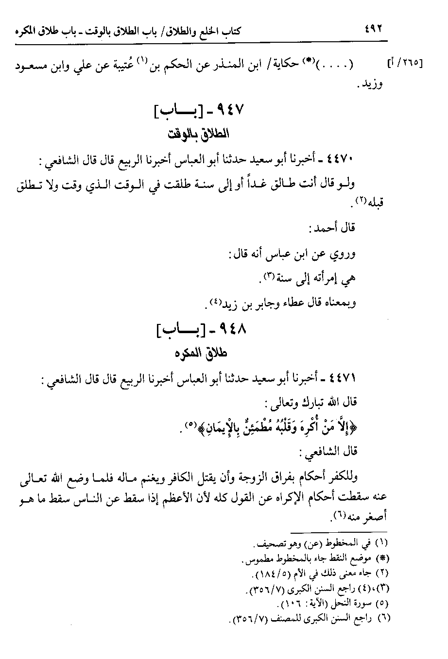 4471 - أخبرنا أبو سعيد حدثنا أبو العباس أخبرنا الربيع قال قال الشافعي قال الله تبارك وتعالى {إلا من أكره وقلبه مطمئن بالإيمان}.