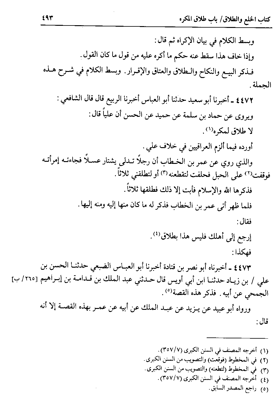 4472 - أخبرنا أبو سعيد حدثنا أبو العباس أخبرنا الربيع قال قال الشافعي ويروى عن حماد بن سلمة عن حميد عن الحسن أن علياً قال لا طلاق لمكره.