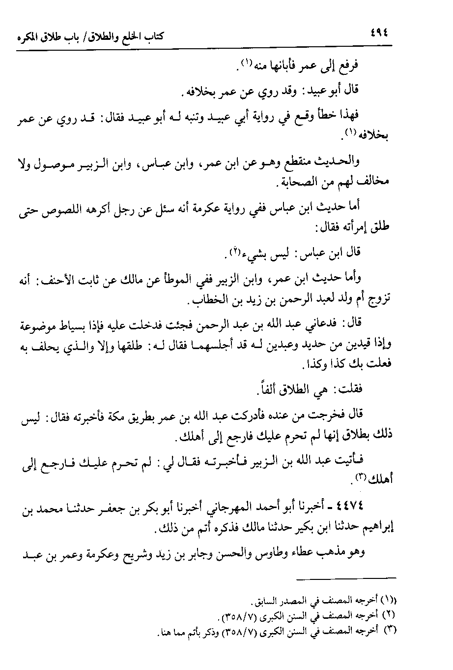 قال فخرجت من عنده فأدركت عبد الله بن عمر بطريق مكة فأخبرته فقال : ليس ذلك بطلاق إنها لم تحرم عليك فارجع إلى أهلك.