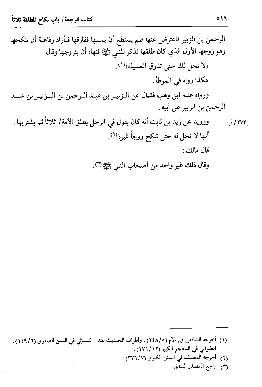 6 @الرحمن بن الزبير فاعترض عنها فلم يستطع أن يمسها ففارقها فأراد رفاعة أن ينكحها وهو زوجها الأول الذي كان طلقها فذكر للنبي صلى الله عليه وسلم فنهاه أن يتزوجها وقال لا تحل لك حتى تذوق العسيلة.