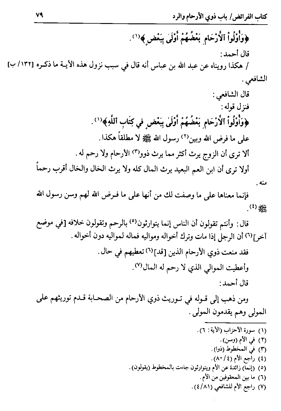 قال الشافعي فنزل قوله {وأولوا الأرحام بعضهم أولى ببعض في كتاب الله}.