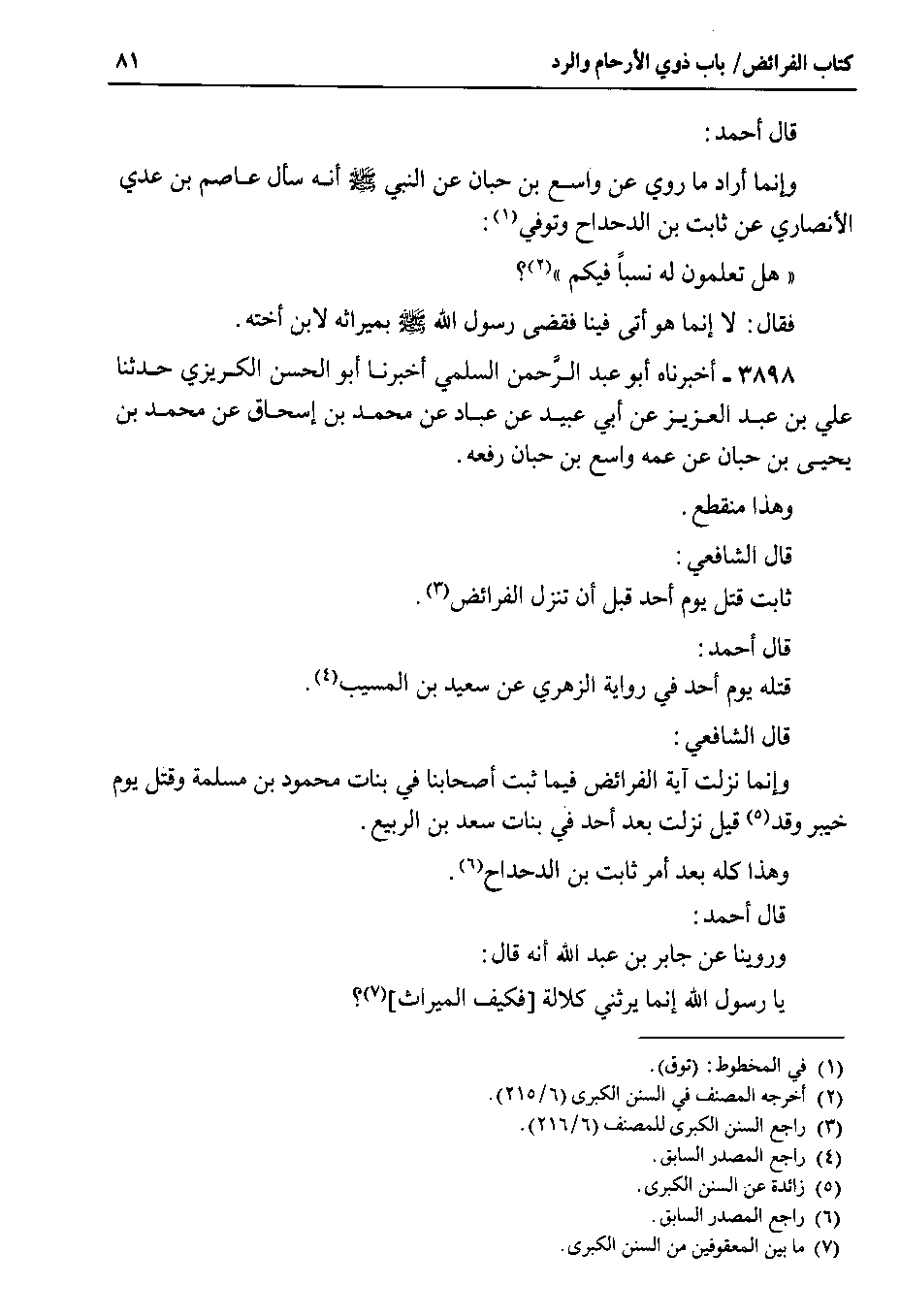 قال أحمد وروينا عن جابر بن عبد الله أنه قال يا رسول الله إنما يرثني كلالة فكيف الميراث ؟