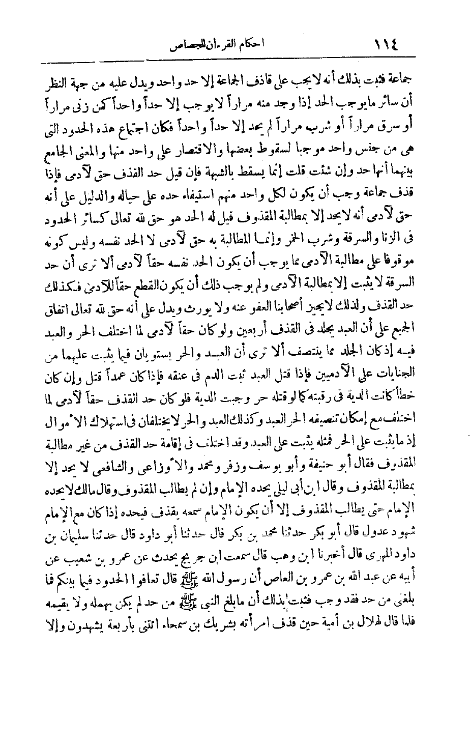 جَمَاعَةً فَثَبَتَ بِذَلِكَ أَنَّهُ لَا يَجِبُ عَلَى قَاذِفِ الْجَمَاعَةِ إلَّا حَدٌّ وَاحِدٌ وَيَدُلُّ عَلَيْهِ مِنْ جِهَةِ النَّظَرِ أَنَّ سَائِرَ مَا يُوجِبُ الْحَدَّ إذَا وُجِدَ مِنْهُ مِرَارًا لَا يُوجِبُ إلَّا حَدًّا وَاحِدًا كَمَنْ زَنَى مِرَارًا أَوْ سَرَقَ مِرَارًا أَوْ شَرِبَ مِرَارًا لَمْ يُحَدَّ إلَّا حَدًّا وَاحِدًا فَكَانَ اجْتِمَاعُ هَذِهِ الْحُدُودِ الَّتِي هِيَ مِنْ جِنْسٍ وَاحِدٍ مُوجِبًا لِسُقُوطِ بَعْضِهَا وَالِاقْتِصَارِ عَلَى وَاحِدٍ مِنْهَا وَالْمَعْنَى الْجَامِعُ بينهما أنها حد وإن شئت قلت إنما يَسْقُطُ بِالشُّبْهَةِ فَإِنْ قِيلَ حَدُّ الْقَذْفِ حَقٌّ لِآدَمِيٍّ فَإِذَا قَذَفَ جَمَاعَةً وَجَبَ أَنْ يَكُونَ لِكُلِّ وَاحِدٍ مِنْهُمْ اسْتِيفَاءُ حَدِّهِ عَلَى حِيَالِهِ وَالدَّلِيلُ عَلَى أَنَّهُ حَقٌّ لِآدَمِيٍّ أَنَّهُ لَا يُحَدُّ إلَّا بِمُطَالَبَةِ الْمَقْذُوفِ قِيلَ لَهُ الْحَدُّ هُوَ حَقٌّ لِلَّهِ تَعَالَى كَسَائِرِ الْحُدُودِ فِي الزِّنَا وَالسَّرِقَةِ وَشُرْبِ الْخَمْرِ وَإِنَّمَا الْمُطَالَبَةُ بِهِ حَقٌّ لِآدَمِيٍّ لَا الْحَدُّ نَفْسُهُ وَلَيْسَ كَوْنُهُ مَوْقُوفًا عَلَى مُطَالَبَةِ الْآدَمِيِّ مِمَّا يُوجِبُ أَنْ يَكُونَ الْحَدُّ نَفْسُهُ حَقًّا لِآدَمِيٍّ أَلَا تَرَى أَنَّ حَدَّ السَّرِقَةِ لَا يَثْبُتُ إلَّا بِمُطَالَبَةِ الْآدَمِيِّ وَلَمْ يُوجِبْ ذَلِكَ أَنْ يَكُونَ الْقَطْعُ حَقًّا لِلْآدَمِيِّ فَكَذَلِكَ حَدُّ الْقَذْفِ وَلِذَلِكَ لَا يُجِيزُ أَصْحَابُنَا الْعَفْوَ عَنْهُ وَلَا يُورَثُ وَيَدُلُّ عَلَى أَنَّهُ حَقٌّ لِلَّهِ تَعَالَى اتِّفَاقُ الْجَمِيعِ عَلَى أَنَّ الْعَبْدَ يُجْلَدُ فِي الْقَذْفِ أَرْبَعِينَ وَلَوْ كَانَ حَقًّا لِآدَمِيٍّ لَمَا اخْتَلَفَ الْحُرُّ والعبد فيه إذ كان الجلد مما ينتصف أَلَا تَرَى أَنَّ الْعَبْدَ وَالْحُرَّ يَسْتَوِيَانِ فِيمَا يَثْبُتُ عَلَيْهِمَا مِنْ الْجِنَايَاتِ عَلَى الْآدَمِيِّينَ فَإِذَا قَتَلَ الْعَبْدُ ثَبَتَ الدَّمُ فِي عُنُقِهِ فَإِذَا كَانَ عَمْدًا قُتِلَ وَإِنْ كَانَ خَطَأً كَانَتْ الدِّيَةُ فِي رَقَبَتِهِ كَمَا لَوْ قَتَلَهُ حَرٌّ وَجَبَتْ الدِّيَةُ فَلَوْ كَانَ حَدُّ الْقَذْفِ حَقًّا لِآدَمِيٍّ لَمَا اخْتَلَفَ مَعَ إمْكَانِ تَنْصِيفِهِ الْحُرُّ العبد وَكَذَلِكَ الْعَبْدُ وَالْحُرُّ لَا يَخْتَلِفَانِ فِي اسْتِهْلَاكِ الْأَمْوَالِ إذْ مَا يَثْبُتُ عَلَى الْحُرِّ فَمِثْلُهُ يَثْبُتُ عَلَى الْعَبْدِ وَقَدْ اُخْتُلِفَ فِي إقَامَةِ حَدِّ الْقَذْفِ مِنْ غَيْرِ مُطَالَبَةِ الْمَقْذُوفِ فَقَالَ أَبُو حَنِيفَةَ وَأَبُو يُوسُفَ وَزُفَرُ وَمُحَمَّدٌ وَالْأَوْزَاعِيُّ وَالشَّافِعِيُّ لَا يُحَدُّ إلَّا بِمُطَالَبَةِ الْمَقْذُوفِ وَقَالَ ابْنُ أَبِي لَيْلَى يَحُدُّهُ الْإِمَامُ وَإِنْ لَمْ يُطَالِبْ الْمَقْذُوفُ وَقَالَ مَالِكٌ لَا يَحُدُّهُ الْإِمَامُ حَتَّى يُطَالِبَ الْمَقْذُوفُ إلَّا أَنْ يَكُونَ الْإِمَامُ سَمِعَهُ يَقْذِفُ فَيَحُدُّهُ إذَا كَانَ مَعَ الْإِمَامِ شُهُودٌ عُدُولٌ