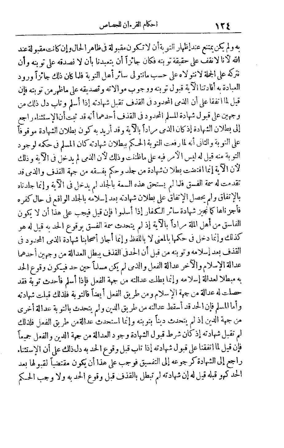 لِعَدَالَةِ إسْلَامِهِ وَإِنَّمَا بَطَلَتْ عَدَالَتُهُ مِنْ جِهَةِ الْفِعْلِ فَإِذَا أَسْلَمَ فَأَحْدَثَ تَوْبَةً فَقَدْ حَصَلَتْ لَهُ عَدَالَةٌ مِنْ جِهَةِ الْإِسْلَامِ وَمِنْ طَرِيقِ الْفِعْلِ أَيْضًا فالتوبة فَلِذَلِكَ قُبِلَتْ شَهَادَتُهُ وَأَمَّا الْمُسْلِمُ فَإِنَّ الْحَدَّ قَدْ أَسْقَطَ عَدَالَتَهُ مِنْ طَرِيقِ الدِّينِ وَلَمْ يتحدث بِالتَّوْبَةِ عَدَالَةً أُخْرَى مِنْ جِهَةِ الدِّينِ إذْ لم يتحدث دِينًا بِتَوْبَتِهِ وَإِنَّمَا اسْتَحْدَثَ عَدَالَةً مِنْ طَرِيقِ الْفِعْلِ فَلِذَلِكَ لَمْ تُقْبَلْ شَهَادَتُهُ إذْ كَانَ شَرْطُ قَبُولِ الشَّهَادَةِ وُجُودَ الْعَدَالَةِ مِنْ جِهَةِ الدِّينِ وَالْفِعْلِ جَمِيعًا فَإِنْ قِيلَ لَمَّا اتَّفَقْنَا عَلَى قَبُولِ شَهَادَتِهِ إذَا تَابَ قَبْلَ وُقُوعِ الْحَدِّ بِهِ دَلَّ ذَلِكَ عَلَى أَنَّ الِاسْتِثْنَاءَ رَاجِعٌ إلَى الشَّهَادَةِ كَرُجُوعِهِ إلَى التَّفْسِيقِ فَوَجَبَ عَلَى هَذَا أَنْ يَكُونَ مُقْتَضِيًا لِقَبُولِهَا بَعْدَ الْحَدِّ كَهُوَ قَبْلَهُ قِيلَ لَهُ إنَّ شَهَادَتَهُ لَمْ تَبْطُلْ بِالْقَذْفِ قَبْلَ وُقُوعِ الْحَدِّ بِهِ وَلَا وَجَبَ الْحُكْمُ