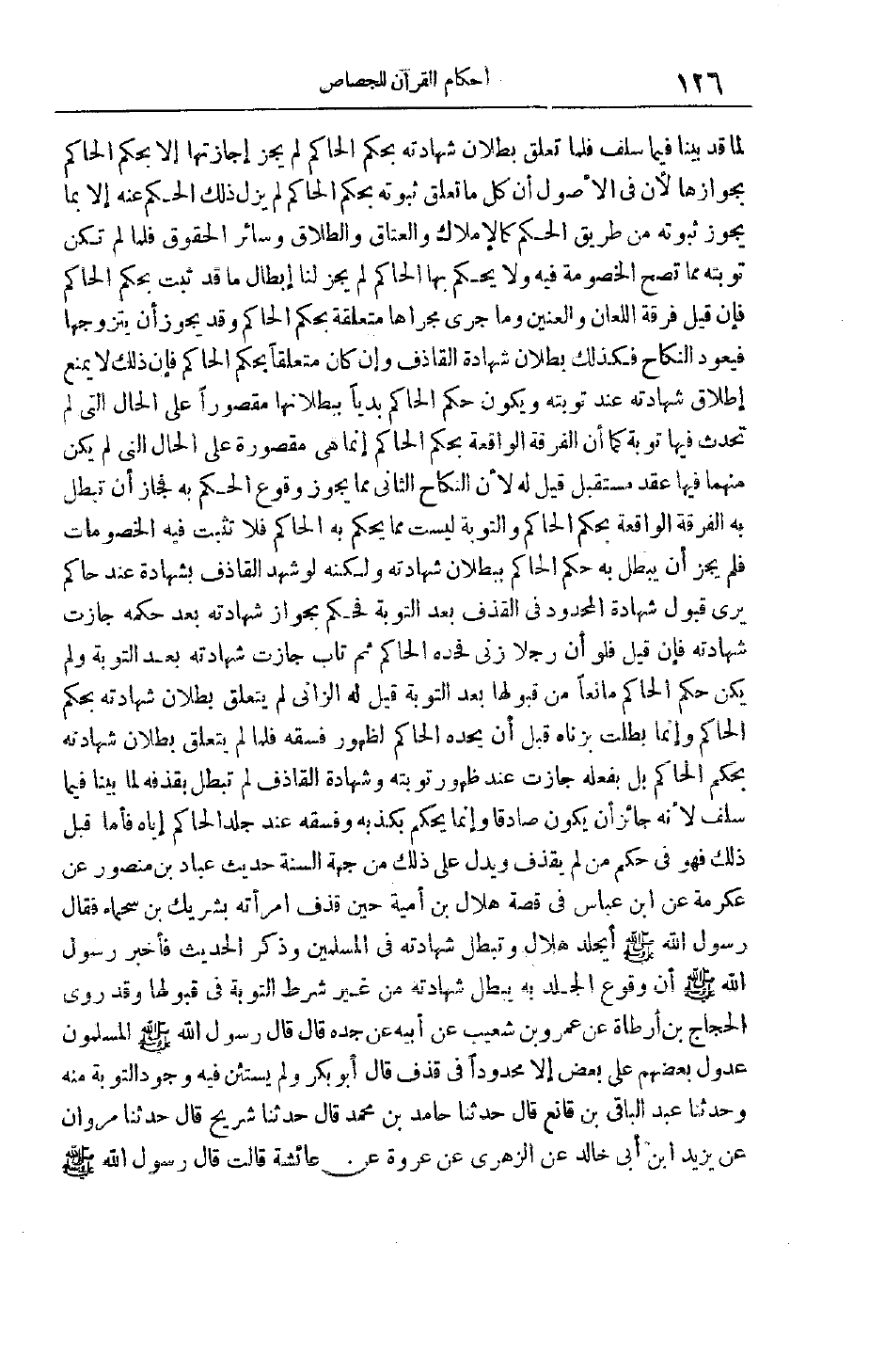 الثَّانِيَ مِمَّا يَجُوزُ وُقُوعُ الْحُكْمِ بِهِ فَجَازَ أَنْ تَبْطُلَ بِهِ الْفُرْقَةُ الْوَاقِعَةُ بِحُكْمِ الْحَاكِمِ وَالتَّوْبَةُ لَيْسَتْ مِمَّا يَحْكُمُ بِهِ الْحَاكِمُ فَلَا تَثْبُتُ فِيهِ الْخُصُومَاتُ فَلَمْ يَجُزْ أَنْ يَبْطُلَ بِهِ حُكْمُ الْحَاكِمِ بِبُطْلَانِ شَهَادَتِهِ وَلَكِنَّهُ لَوْ شَهِدَ الْقَاذِفُ بِشَهَادَةٍ عِنْدَ حَاكِمٍ يَرَى قَبُولَ شَهَادَةِ الْمَحْدُودِ فِي الْقَذْفِ بَعْدَ التَّوْبَةِ فَحَكَمَ بِجَوَازِ شَهَادَتِهِ بَعْدَ حُكْمِهِ جَازَتْ شَهَادَتُهُ فَإِنْ قِيلَ فَلَوْ أَنَّ رَجُلًا زَنَى فَحَدَّهُ الْحَاكِمُ ثُمَّ تَابَ جَازَتْ شَهَادَتُهُ بَعْدَ التَّوْبَةِ وَلَمْ يَكُنْ حُكْمُ الْحَاكِمِ مَانِعًا مِنْ قَبُولِهَا بَعْدَ التَّوْبَةِ قِيلَ لَهُ الزَّانِي لَمْ يَتَعَلَّقْ بُطْلَانُ شَهَادَتِهِ بِحُكْمِ الْحَاكِمِ وَإِنَّمَا بَطَلَتْ بِزِنَاهُ قَبْلَ أَنْ يَحُدَّهُ الْحَاكِمُ لِظُهُورِ فِسْقِهِ فَلَمَّا لَمْ يَتَعَلَّقْ بُطْلَانُ شَهَادَتِهِ بِحُكْمِ الْحَاكِمِ بَلْ بِفِعْلِهِ جَازَتْ عِنْدَ ظُهُورِ تَوْبَتِهِ وَشَهَادَةُ الْقَاذِفِ لَمْ تَبْطُلْ بِقَذْفِهِ لِمَا بَيَّنَّا فِيمَا سَلَفَ لِأَنَّهُ جَائِزٌ أَنْ يَكُونَ صَادِقًا وإنما يحكم بكذبه وفسقه عند جلدا لحاكم إيَّاهُ فَأَمَّا قَبْلَ ذَلِكَ فَهُوَ فِي حُكْمِ مَنْ لَمْ يَقْذِفْ وَيَدُلُّ عَلَى ذَلِكَ مِنْ جِهَةِ السُّنَّةِ