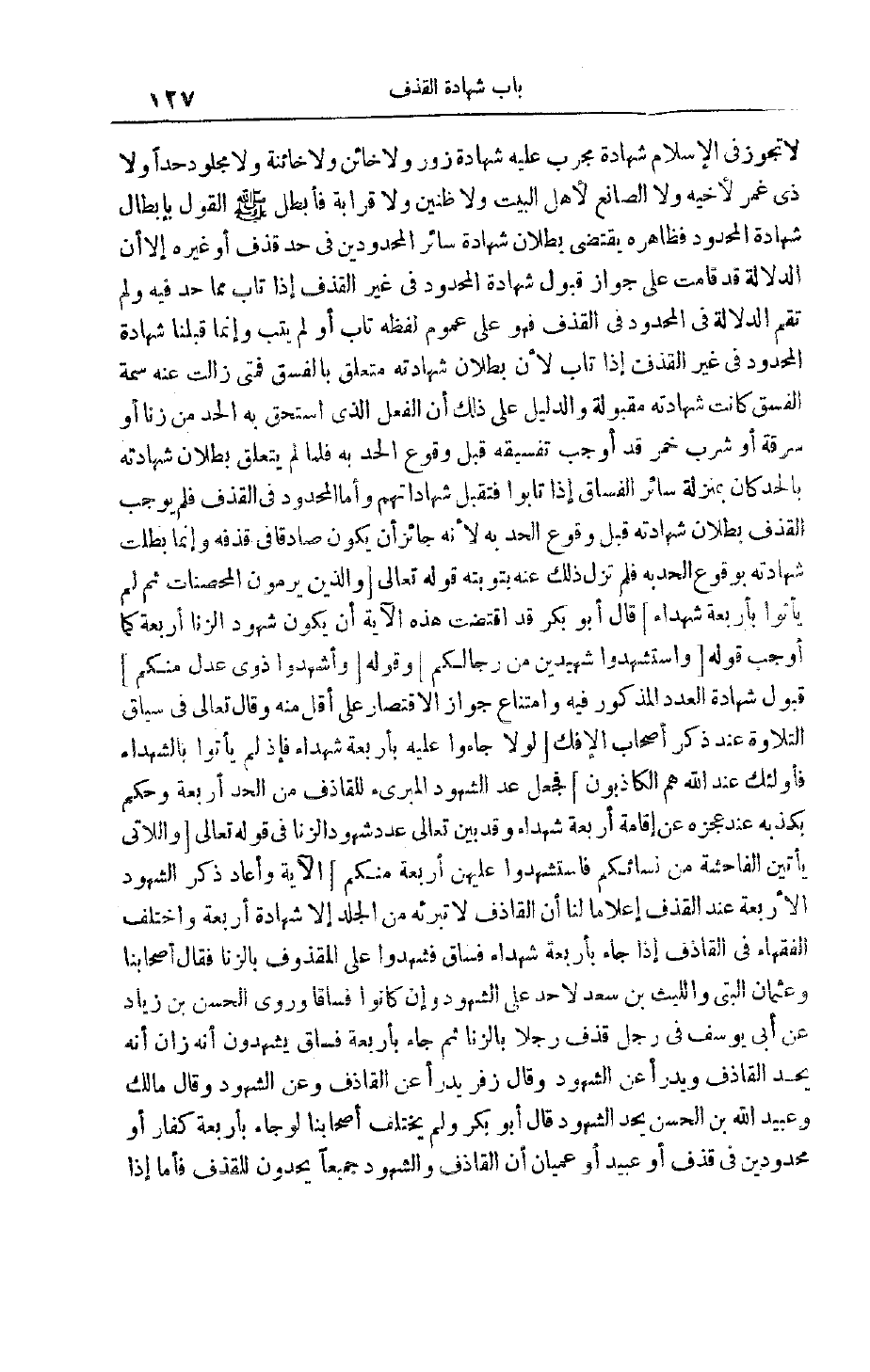 فأبطل صلّى الله عليه وسلّم الْقَوْلَ بِإِبْطَالِ شَهَادَةِ الْمَحْدُودِ فَظَاهِرُهُ يَقْتَضِي بُطْلَانَ شَهَادَةِ سَائِرِ الْمَحْدُودِينَ فِي حَدِّ قَذْفٍ أَوْ غَيْرِهِ إلَّا أَنَّ الدَّلَالَةَ قَدْ قَامَتْ عَلَى جَوَازِ قَبُولِ شَهَادَةِ الْمَحْدُودِ فِي غَيْرِ الْقَذْفِ إذَا تَابَ مِمَّا حُدَّ فِيهِ وَلَمْ تَقُمْ الدَّلَالَةُ فِي الْمَحْدُودِ فِي الْقَذْفِ فَهُوَ عَلَى عُمُومِ لَفْظِهِ تَابَ أَوْ لَمْ يَتُبْ وَإِنَّمَا قَبِلْنَا شَهَادَةَ الْمَحْدُودِ فِي غَيْرِ الْقَذْفِ إذَا تَابَ لِأَنَّ بُطْلَانَ شَهَادَتِهِ مُتَعَلِّقٌ بِالْفِسْقِ فَمَتَى زَالَتْ عَنْهُ سِمَةُ الْفِسْقِ كَانَتْ شَهَادَتُهُ مَقْبُولَةً وَالدَّلِيلُ عَلَى ذَلِكَ أَنَّ الْفِعْلَ الَّذِي اسْتَحَقَّ بِهِ الْحَدَّ مِنْ زِنًا أَوْ سَرِقَةٍ أَوْ شُرْبِ خَمْرٍ قَدْ أَوْجَبَ تَفْسِيقَهُ قَبْلَ وُقُوعِ الْحَدِّ بِهِ فَلَمَّا لَمْ يَتَعَلَّقْ بُطْلَانُ شَهَادَتِهِ بالحد كان بمنزلة سائر الفاسق إذَا تَابُوا فَتُقْبَلُ شَهَادَاتُهُمْ وَأَمَّا الْمَحْدُودُ فِي الْقَذْفِ فَلَمْ يُوجِبْ الْقَذْفُ بُطْلَانَ شَهَادَتِهِ قَبْلَ وُقُوعِ الْحَدِّ بِهِ لِأَنَّهُ جَائِزٌ أَنْ يَكُونَ صَادِقًا فِي قَذْفِهِ وَإِنَّمَا بَطَلَتْ شَهَادَتُهُ بِوُقُوعِ الْحَدِّ بِهِ فَلَمْ تُزِلْ ذَلِكَ عَنْهُ بِتَوْبَتِهِ قَوْله تَعَالَى وَالَّذِينَ يَرْمُونَ الْمُحْصَناتِ ثُمَّ لَمْ يَأْتُوا بِأَرْبَعَةِ شُهَداءَ قَالَ أَبُو بَكْرٍ قَدْ اقْتَضَتْ هَذِهِ الْآيَةُ أَنْ يَكُونَ شُهُودُ الزِّنَا أَرْبَعَةً كَمَا أَوْجَبَ قوله وَاسْتَشْهِدُوا شَهِيدَيْنِ مِنْ رِجالِكُمْ وقوله وَأَشْهِدُوا ذَوَيْ عَدْلٍ مِنْكُمْ قَبُولَ شَهَادَةِ الْعَدَدِ الْمَذْكُورِ فِيهِ وَامْتِنَاعُ جَوَازِ الِاقْتِصَارِ عَلَى أَقَلَّ مِنْهُ وَقَالَ تَعَالَى فِي سِيَاقِ التِّلَاوَةِ عِنْدَ ذِكْرِ أَصْحَابِ الْإِفْكِ لَوْلا جاؤُ عَلَيْهِ بِأَرْبَعَةِ شُهَداءَ فَإِذْ لَمْ يَأْتُوا بِالشُّهَداءِ فَأُولئِكَ عِنْدَ اللَّهِ هُمُ الْكاذِبُونَ فجعل عد الشُّهُودِ الْمُبَرِّئِ لِلْقَاذِفِ مِنْ الْحَدِّ أَرْبَعَةً وَحَكَمَ بِكَذِبِهِ عِنْدَ عَجْزِهِ عَنْ إقَامَةِ أَرْبَعَةِ شُهَدَاءَ وَقَدْ بَيَّنَ تَعَالَى عَدَدَ شُهُودِ الزِّنَا فِي قَوْله تَعَالَى وَاللَّاتِي يَأْتِينَ الْفاحِشَةَ مِنْ نِسائِكُمْ فَاسْتَشْهِدُوا عَلَيْهِنَّ أَرْبَعَةً مِنْكُمْ الْآيَةَ وَأَعَادَ ذِكْرَ الشُّهُودِ الْأَرْبَعَةِ عِنْدَ الْقَذْف إعْلَامًا لَنَا أَنَّ الْقَاذِفَ لَا تُبْرِئُهُ مِنْ الْجَلْدِ إلَّا شَهَادَةُ أَرْبَعَةٍ وَاخْتَلَفَ الْفُقَهَاءُ فِي الْقَاذِفِ إذَا جَاءَ بِأَرْبَعَةِ شُهَدَاءَ فُسَّاقٍ فَشَهِدُوا عَلَى الْمَقْذُوفِ بِالزِّنَا فَقَالَ أَصْحَابُنَا وَعُثْمَانُ الْبَتِّيُّ وَاللَّيْثُ بْنُ سَعْدٍ لَا حَدَّ عَلَى الشُّهُودِ وَإِنْ كَانُوا فُسَّاقًا وَرَوَى الْحَسَنُ بْنُ زِيَادٍ عَنْ أَبِي يُوسُفَ فِي رَجُلٍ قَذَفَ رَجُلًا بِالزِّنَا ثُمَّ جَاءَ بِأَرْبَعَةِ فُسَّاقٍ يَشْهَدُونَ أَنَّهُ زَانٍ إنَّهُ يُحَدُّ الْقَاذِفُ وَيُدْرَأُ عَنْ الشُّهُودِ وَقَالَ زُفَرُ يُدْرَأُ عَنْ الْقَاذِفِ وَعَنْ الشُّهُودِ وَقَالَ مَالِكٌ وَعُبَيْدُ اللَّهِ بْنُ الْحَسَنِ يُحَدُّ الشُّهُودُ قَالَ أَبُو بَكْرٍ وَلَمْ يَخْتَلِفْ أَصْحَابُنَا لَوْ جَاءَ بِأَرْبَعَةِ كُفَّارٍ أَوْ مَحْدُودِينَ فِي قَذْفٍ أَوْ عَبِيدٍ أَوْ عُمْيَانٍ أَنَّ الْقَاذِفَ وَالشُّهُودَ جَمِيعًا يُحَدُّونَ لِلْقَذْفِ فَأَمَّا إذَا