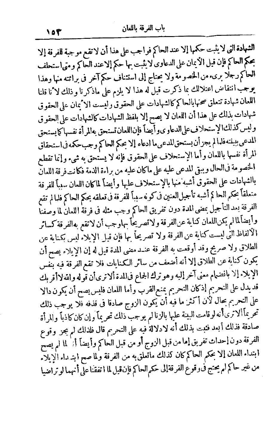 الشَّهَادَةَ الَّتِي لَا يَثْبُتُ حُكْمُهَا إلَّا عِنْدَ الْحَاكِمِ فَوَاجِبٌ عَلَى هَذَا أَنْ لَا تَقَعَ مُوجِبَةً لِلْفُرْقَةِ إلَّا بِحُكْمِ الْحَاكِمِ فَإِنْ قِيلَ الْأَيْمَانُ عَلَى الدَّعَاوَى لَا يَثْبُتُ بِهَا حُكْمٌ إلَّا عِنْدَ الْحَاكِمِ وَمَتَى اسْتَحْلَفَ الْحَاكِمُ رَجُلًا برىء مِنْ الْخُصُومَةِ وَلَا يَحْتَاجُ إلَى اسْتِئْنَافِ حُكْمٍ آخر في برائته مِنْهَا وَهَذَا يُوجِبُ انْتِقَاضَ اعْتِلَالِك بِمَا ذَكَرْت قِيلَ لَهُ هَذَا لَا يَلْزَمُ عَلَى مَا ذكرنا وذلك لأنا قلنا اللِّعَانَ شَهَادَةٌ تَتَعَلَّقُ صِحَّتُهَا بِالْحَاكِمِ كَالشَّهَادَاتِ عَلَى الْحُقُوقِ وَلَيْسَتْ الْأَيْمَانُ عَلَى الْحُقُوقِ شَهَادَاتٍ بِذَلِكَ عَلَى هَذَا أَنَّ اللِّعَانَ لَا يَصِحُّ إلَّا بلفظ الشهادات كَالشَّهَادَاتِ عَلَى الْحُقُوقِ وَلَيْسَ كَذَلِكَ الِاسْتِحْلَافُ عَلَى الدَّعَاوَى وَأَيْضًا فَإِنَّ اللِّعَانَ تَسْتَحِقُّ بِهِ الْمَرْأَةُ نَفْسَهَا كَمَا يَسْتَحِقُّ الْمُدَّعِي بِبَيِّنَتِهِ فَلَمَّا لَمْ يَجُزْ أَنْ يَسْتَحِقَّ الْمُدَّعِي مَا ادَّعَاهُ إلَّا بِحُكْمِ الْحَاكِمِ وَجَبَ حُكْمُهُ فِي اسْتِحْقَاقِ الْمَرْأَةِ نَفْسَهَا بِاللِّعَانِ وَأَمَّا الِاسْتِحْلَافُ عَلَى الْحُقُوقِ فَإِنَّهُ لَا يُسْتَحَقُّ بِهِ شَيْءٌ وَإِنَّمَا تُقْطَعُ الْخُصُومَةُ فِي الْحَالِ وَيَبْقَى الْمُدَّعَى عَلَيْهِ عَلَى مَا كَانَ عَلَيْهِ مِنْ بَرَاءَةِ الذِّمَّةِ فَكَانَتْ فُرْقَةُ اللِّعَانِ بِالشَّهَادَاتِ عَلَى الْحُقُوقِ أَشْبَهَ مِنْهَا بِالِاسْتِحْلَافِ عَلَيْهَا وَأَيْضًا لَمَّا كَانَ اللِّعَانُ سَبَبًا لِلْفُرْقَةِ مُتَعَلِّقًا بِحُكْمِ الْحَاكِمِ أَشْبَهَ تَأْجِيلَ الْعِنِّينِ فِي كَوْنِهِ سَبَبًا لِلْفُرْقَةِ فِي تَعَلُّقِهِ بِحُكْمِ الْحَاكِمِ فَلَمَّا لَمْ تَقَع الْفُرْقَةُ بَعْدَ التَّأْجِيلِ بِمُضِيِّ الْمُدَّةِ دُونَ تَفْرِيقِ الْحَاكِمِ وَجَبَ مِثْلُهُ فِي فُرْقَةِ اللِّعَانِ لِمَا وَصَفْنَا وَأَيْضًا لَمَّا لَمْ يَكُنْ اللِّعَانُ كِنَايَةً عَنْ الْفُرْقَةِ وَلَا تَصْرِيحًا بِهَا وَجَبَ أَنْ لَا تَقَعَ بِهِ الْفُرْقَةُ كَسَائِرِ الْأَلْفَاظِ الَّتِي لَيْسَتْ كِنَايَةً عَنْ الْفُرْقَةِ وَلَا تَصْرِيحًا بِهَا فَإِنْ قِيلَ الْإِيلَاءُ لَيْسَ بِكِنَايَةٍ عَنْ الطَّلَاقِ وَلَا صَرِيحٍ وَقَدْ أُوقِعَتْ بِهِ الْفُرْقَةُ عِنْدَ مُضِيِّ الْمُدَّةِ قِيلَ لَهُ إن الإيلاء يصح أَنْ يَكُونَ كِنَايَةً عَنْ الطَّلَاقِ إلَّا أَنَّهُ أَضْعَفُ مِنْ سَائِرِ الْكِنَايَاتِ فَلَا تَقَعُ الْفُرْقَةُ فِيهِ بِنَفْسِ الْإِيلَاءِ إلَّا بِانْضِمَامِ مَعْنًى آخَرَ إلَيْهِ وَهُوَ تَرْكُ الْجِمَاعِ فِي الْمُدَّةِ أَلَا تَرَى أَنَّ قَوْلَهُ وَاَللَّهِ لَا أَقْرَبُك قَدْ يَدُلُّ عَلَى التَّحْرِيمِ إذْ كَانَ التَّحْرِيمُ يَمْنَعُ القرب وأما اللعان فليس يصح أَنْ يَكُونَ دَالًا عَلَى التَّحْرِيمِ بِحَالٍ لِأَنَّ أَكْثَرَ مَا فِيهِ أَنْ يَكُونَ الزَّوْجُ صَادِقًا فِي قَذْفِهِ فَلَا يُوجِبُ ذَلِكَ تَحْرِيمًا أَلَا تَرَى أَنَّهُ لَوْ قَامَتْ الْبَيِّنَةُ عَلَيْهَا بِالزِّنَا لَمْ يُوجِبْ ذَلِكَ تَحْرِيمًا وَإِنْ كَانَ كَاذِبًا وَالْمَرْأَةُ صَادِقَةً فَذَلِكَ أَبْعَدُ فَثَبَتَ بِذَلِكَ أَنَّهُ لَا دَلَالَةَ فِيهِ عَلَى التَّحْرِيمِ قَالَ فَلِذَلِكَ لَمْ يَجُزْ وُقُوعُ الْفُرْقَةِ دُونَ إحْدَاثِ تَفْرِيقٍ إمَّا مِنْ قِبَلِ الزَّوْجِ أَوْ مِنْ قِبَلِ الْحَاكِمِ وَأَيْضًا أَنَّهُ لَمَّا لَمْ يَصِحَّ ابْتِدَاءُ اللِّعَانِ إلَّا بِحُكْمِ الْحَاكِمِ كَانَ كَذَلِكَ مَا تَعَلَّقَ بِهِ مِنْ الْفُرْقَةِ وَلَمَّا صَحَّ ابْتِدَاءُ الْإِيلَاءِ مِنْ غَيْرِ حَاكِمٍ لَمْ يُحْتَجْ فِي وُقُوعِ ا