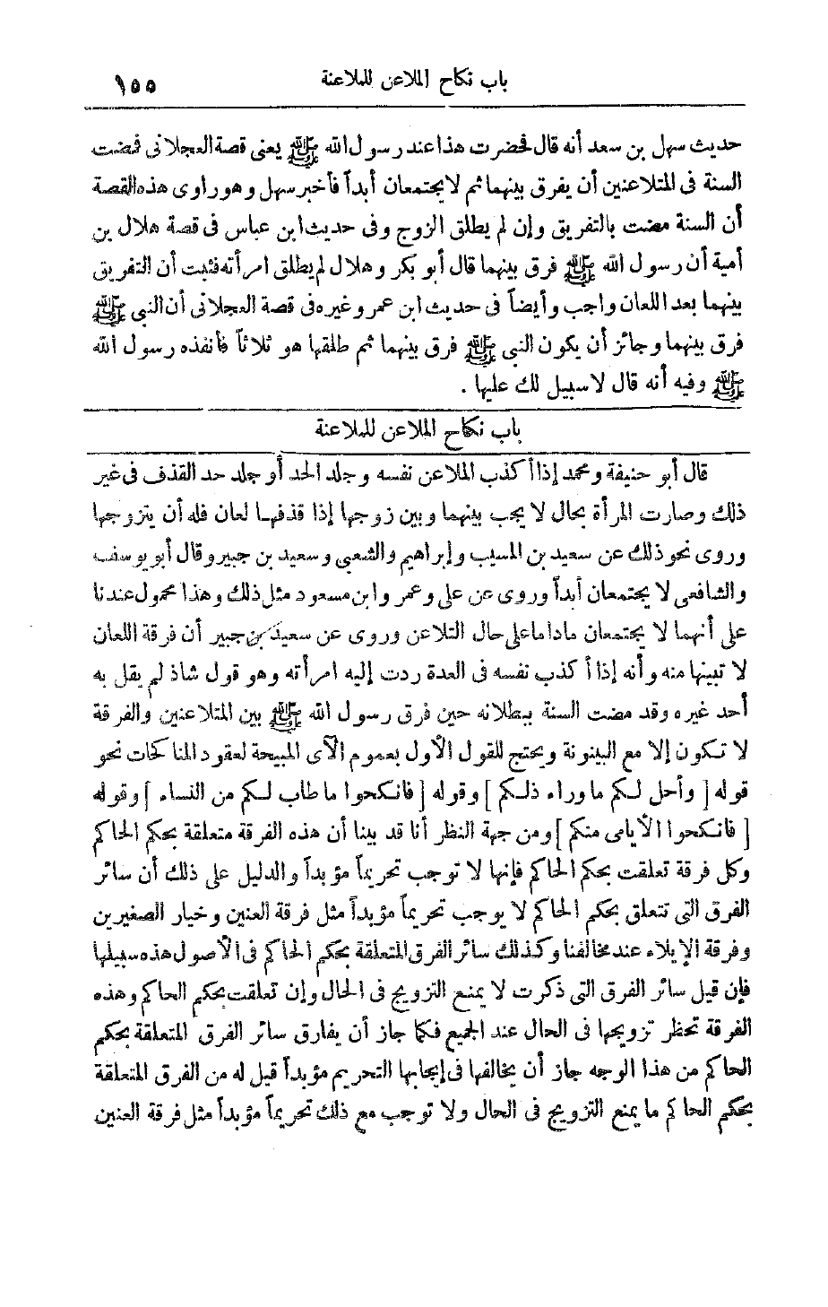 حَدِيثِ سَهْلِ بْنِ سَعْدِ إنَّهُ قَالَ فَحَضَرْت هَذَا عِنْدَ رَسُولِ اللَّه صَلَّى اللَّهُ عَلَيْهِ وَسَلَّمَ يَعْنِي قِصَّةَ الْعَجْلَانِيِّ فَمَضَتْ السُّنَّةُ فِي الْمُتَلَاعِنَيْنِ أَنْ يُفَرَّقَ بَيْنَهُمَا ثُمَّ لَا يَجْتَمِعَانِ أَبَدًا فَأَخْبَرَ سَهْلٌ وَهُوَ رَاوِي هَذِهِ الْقِصَّة أَنَّ السُّنَّةَ مَضَتْ بِالتَّفْرِيقِ وَإِنْ لَمْ يُطَلِّقْ الزَّوْجُ