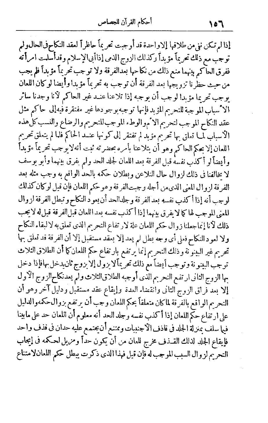 إذَا لَمْ تَكُنْ نَفْيٌ مِنْ طَلَاقِهَا إلَّا وَاحِدَةٌ قَدْ أَوْجَبَتْ تَحْرِيمًا حَاظِرًا لِعَقْدِ النِّكَاحِ فِي الْحَالِ وَلَمْ تُوجِبْ مَعَ ذَلِكَ تَحْرِيمًا مُؤَبَّدًا وَكَذَلِكَ الزَّوْجُ الذِّمِّيُّ إذَا أَبَى الْإِسْلَامَ وَقَدْ أَسْلَمَتْ امْرَأَتُهُ فَفَرَّقَ الْحَاكِمُ بَيْنَهُمَا مَنَعَ ذَلِكَ مِنْ نِكَاحِهَا بَعْدَ الْفُرْقَةِ وَلَا تُوجِبُ تَحْرِيمًا مُؤَبَّدًا فَلَمْ يَجِبُ مِنْ حَيْثُ حَظَرْنَا تَزْوِيجَهَا بَعْدَ الْفُرْقَةِ أَنْ تُوجِبَ بِهِ تَحْرِيمًا مُؤَبَّدًا وَأَيْضًا لَوْ كَانَ اللِّعَانُ يُوجِبُ تَحْرِيمًا مُؤَبَّدًا لَوَجَبَ أَنْ يُوجِبَهُ إذَا تَلَاعَنَا عِنْدَ غَيْرِ الْحَاكِمِ لِأَنَّا وَجَدْنَا سَائِرَ الْأَسْبَابِ الْمُوجِبَةِ لِلتَّحْرِيمِ الْمُؤَبَّدِ فَإِنَّهَا تُوجِبُهُ بِوُجُودِهَا غَيْرَ مُفْتَقِرَةٍ فِيهِ إلَى حَاكِمٍ مِثْلُ عَقْدِ النِّكَاحِ الْمُوجِبِ لِتَحْرِيمِ الْأُمِّ وَالْوَطْءِ الْمُوجِبِ لِلتَّحْرِيمِ وَالرِّضَاعِ وَالنَّسَبِ كُلُّ هَذِهِ الْأَسْبَابِ لَمَّا تَعَلَّقَ بِهَا تَحْرِيمٌ مُؤَبَّدٌ لَمْ تَفْتَقِرْ إلَى كَوْنِهَا عِنْدَ الْحَاكِمِ فَلَمَّا لَمْ يَتَعَلَّقْ تَحْرِيمُ اللِّعَانِ إلَّا بِحُكْمِ الْحَاكِمِ وَهُوَ أَنْ يَتَلَاعَنَا بِأَمْرِهِ بِحَضْرَتِهِ ثَبَتَ أَنَّهُ لَا يُوجِبُ تَحْرِيمًا مُؤَبَّدًا وَأَيْضًا لَوْ أَكْذَبَ نَفْسَهُ قَبْلَ الْفُرْقَةِ بَعْدَ اللِّعَانِ لَجُلِدَ الْحَدَّ وَلَمْ يُفَرِّقْ بَيْنَهُمَا وَأَبُو يُوسُفَ لَا يُخَالِفُنَا فِي ذَلِكَ لِزَوَالِ حَالِ التَّلَاعُنِ وَبُطْلَانِ حُكْمِهِ بِالْحَدِّ الْوَاقِعِ بِهِ وَجَبَ مِثْلُهُ بَعْدَ الْفُرْقَةِ لِزَوَالِ الْمَعْنَى الَّذِي مِنْ أَجْلِهِ وَجَبَتْ الْفُرْقَةُ وَهُوَ حُكْمُ اللِّعَانِ فَإِنْ قِيلَ لَوْ كَانَ كَذَلِكَ لَوَجَبَ أَنَّهُ إذَا أَكْذَبَ نَفْسَهُ بَعْدَ الْفُرْقَةِ وَجُلِدَ الْحَدَّ أَنْ يَعُودَ النِّكَاحُ وَتَبْطُلُ الْفُرْقَةُ لِزَوَالِ الْمَعْنَى الْمُوجِبِ لَهَا كَمَا لَا يُفَرَّقُ بَيْنَهُمَا إذَا أَكْذَبَ نَفْسَهُ بَعْدَ اللِّعَانِ قَبْلَ الْفُرْقَةِ قِيلَ لَهُ لَا يَجِبُ ذَلِكَ لِأَنَّا إنَّمَا جَعَلْنَا زَوَالَ حُكْمِ اللِّعَانِ عِلَّةً لِارْتِفَاعِ التَّحْرِيمِ الَّذِي تَعَلَّقَ بِهِ لَا لِبَقَاءِ النِّكَاحِ وَلَا لِعَوْدِ النِّكَاحِ فَعَلَى أَيِّ وَجْهٍ بَطَلَ لَمْ يَعُدْ إلَّا بِعَقْدٍ مُسْتَقْبَلٍ إلَّا أَنَّ الْفُرْقَةَ قَدْ تَعَلَّقَ بِهَا تَحْرِيمٌ غَيْرُ الْبَيْنُونَةِ وَذَلِكَ التَّحْرِيمُ إنَّمَا يَرْتَفِعُ بِارْتِفَاعِ حُكْمِ اللِّعَانِ كَمَا أَنَّ الطَّلَاقَ الثَّلَاثَ تُوجِبُ الْبَيْنُونَةَ وَتُوجِبُ أَيْضًا مَعَ ذَلِكَ تَحْرِيمًا لَا يَزُولُ إلَّا بِزَوْجٍ ثَانٍ يَدْخُلُ بِهَا فَإِذَا دَخَلَ بِهَا الزَّوْجُ الثَّانِي ارْتَفَعَ التَّحْرِيمُ الَّذِي أَوْجَبَهُ الطَّلَاقُ الثَّلَاثُ وَلَمْ يَعُدْ نِكَاحُ الزَّوْجِ الْأَوَّلِ إلَّا بَعْدَ فِرَاقِ الزَّوْجِ الثَّانِي وَانْقِضَاءِ الْعِدَّةِ وَإِيقَاعِ عَقْدٍ مُسْتَقْبَلٍ وَدَلِيلٌ آخَرَ وَهُوَ أَنَّ التَّحْرِيمَ الْوَاقِعَ بِالْفُرْقَةِ لَمَّا كَانَ مُتَعَلِّقًا بِحُكْمِ اللِّعَانِ وَجَبَ أَنْ يَرْتَفِعَ بِزَوَالِ حُكْمِهِ وَالدَّلِيلُ عَلَى ارْتِفَاعِ حُكْمِ اللِّعَانِ إذَا أَكْذَبَ نَفْسَهُ وَجُلِدَ الْحَدَّ أَنَّهُ مَعْلُومٌ أَنَّ اللِّعَانَ حد على ما بينا فيما سلف بمنزلة الْجَلْدِ فِي قَاذِفِ الْأَجْنَبِيَّاتِ وَمُمْتَنِعٌ أَنْ يَجْتَمِعَ عَلَيْهِ حَدَّانِ فِي قَذْفٍ وَاحِدٍ فَإِيقَاعُ الْجَلْدِ لِذَلِكَ الْقَذْفِ مُخْرِجٌ لِلِّعَانِ مِنْ أَنْ يَكُونَ حَدًّا وَمُزِيلٌ لِحُكْمِهِ فِي إيجَابِ التَّحْرِيمِ لِزَوَالِ السَ