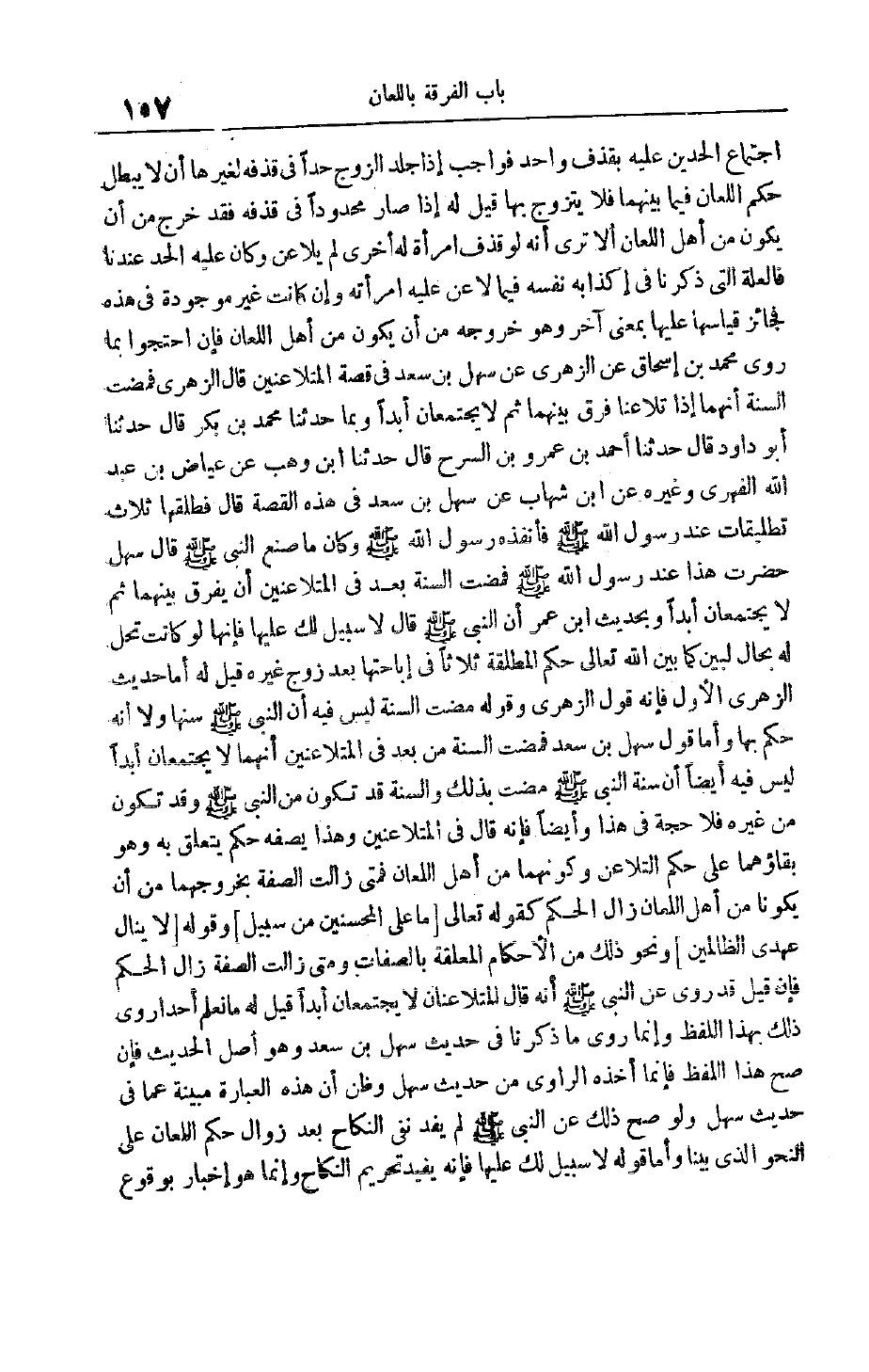 الْحَدَّيْنِ عَلَيْهِ بِقَذْفٍ وَاحِدٍ فَوَاجِبٌ إذَا جُلِدَ الزَّوْجُ حَدًّا فِي قَذْفِهِ لِغَيْرِهَا أَنْ لَا يَبْطُلَ حُكْمُ اللِّعَانِ فِيمَا بَيْنَهُمَا فَلَا يَتَزَوَّجُ بِهَا قِيلَ لَهُ إذَا صَارَ مَحْدُودًا في قذفه فَقَدْ خَرَجَ مِنْ أَنْ يَكُونَ مِنْ أَهْلِ اللِّعَانِ أَلَا تَرَى أَنَّهُ لَوْ قَذَفَ امْرَأَةً لَهُ أُخْرَى لَمْ يُلَاعِنْ وَكَانَ عَلَيْهِ الْحَدُّ عِنْدَنَا فَالْعِلَّةُ الَّتِي ذَكَرْنَا فِي إكْذَابِهِ نَفْسَهُ فِيمَا لَاعَنَ عَلَيْهِ امْرَأَتَهُ وَإِنْ كَانَتْ غَيْرَ مَوْجُودَةٍ فِي هَذِهِ فَجَائِزٌ قِيَاسُهَا عَلَيْهَا بِمَعْنًى آخَرَ وَهُوَ خُرُوجُهُ مِنْ أَنْ يَكُونَ مِنْ أَهْلِ اللِّعَانِ فَإِنْ احْتَجُّوا بِمَا رَوَى مُحَمَّدُ بْنُ إِسْحَاقَ عَنْ الزُّهْرِيِّ عَنْ سَهْلِ بْنِ سَعْدٍ فِي قِصَّةِ الْمُتَلَاعِنَيْنِ قَالَ الزُّهْرِيُّ فَمَضَتْ السُّنَّةُ أَنَّهُمَا إذَا تَلَاعَنَا فُرِّقَ بَيْنَهُمَا ثُمَّ لَا يَجْتَمِعَانِ أَبَدًا وَبِمَا