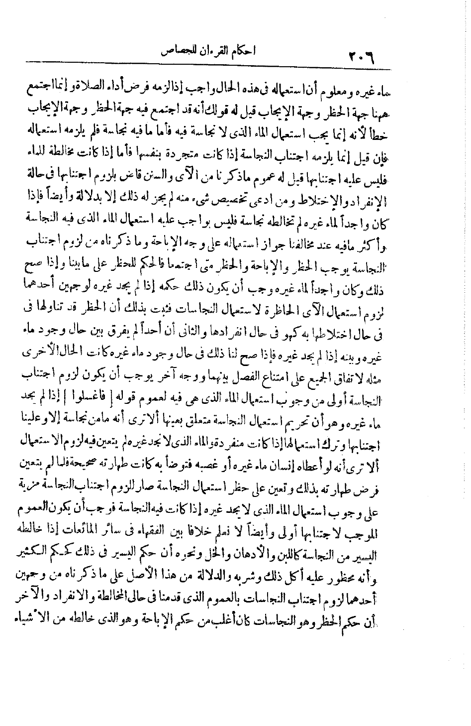 مَاءً غَيْرَهُ وَمَعْلُومٌ أَنَّ اسْتِعْمَالَهُ فِي هَذِهِ الْحَالِ وَاجِبٌ إذَا لَزِمَهُ فَرْضُ أَدَاءِ الصَّلَاةِ وإنما اجتمع هاهنا جِهَةُ الْحَظْرِ وَجِهَةُ الْإِيجَابِ قِيلَ لَهُ قَوْلُك إنَّهُ قَدْ اجْتَمَعَ فِيهِ جِهَةُ الْحَظْرِ وَجِهَةُ الْإِيجَابِ خَطَأٌ لِأَنَّهُ إنَّمَا يَجِبُ اسْتِعْمَالُ الْمَاءِ الَّذِي لَا نَجَاسَةَ فِيهِ فَأَمَّا مَا فِيهِ نجاسة فلم يلزمه استعماله فإن قيل إما يَلْزَمُهُ اجْتِنَابُ النَّجَاسَةِ إذَا كَانَتْ مُتَجَرِّدَةً بِنَفْسِهَا فَأَمَّا إذَا كَانَتْ مُخَالِطَةً لِلْمَاءِ فَلَيْسَ عَلَيْهِ اجْتِنَابُهَا قِيلَ لَهُ عُمُومُ مَا ذَكَرْنَا مِنْ الْآيِ وَالسُّنَنِ قَاضٍ بِلُزُومِ اجْتِنَابِهَا فِي حَالَةِ الِانْفِرَادِ وَالِاخْتِلَاطِ وَمَنْ ادَّعَى تَخْصِيصَ شَيْءٍ مِنْهُ لَمْ يَجُزْ لَهُ ذَلِكَ إلَّا بِدَلَالَةٍ وَأَيْضًا فَإِذَا كَانَ وَاجِدًا لِمَاءٍ غَيْرِهِ لَمْ تُخَالِطْهُ نَجَاسَةٌ فَلَيْسَ بِوَاجِبٍ عَلَيْهِ اسْتِعْمَالُ الْمَاءِ الَّذِي فِيهِ النَّجَاسَةُ وَأَكْثَرُ مَا فِيهِ عِنْدَ مُخَالِفِنَا جَوَازُ اسْتِعْمَالِهِ عَلَى وَجْهِ الْإِبَاحَةِ وَمَا ذَكَرْنَاهُ مِنْ لُزُومِ اجْتِنَابِ النَّجَاسَةِ يُوجِبُ الْحَظْرَ وَالْإِبَاحَةُ وَالْحَظْرُ مَتَى اجْتَمَعَا فَالْحُكْمُ لِلْحَظْرِ عَلَى مَا بَيَّنَّا وَإِذَا صَحَّ ذَلِكَ وَكَانَ وَاجِدًا لِمَاءٍ غَيْرِهِ وَجَبَ أَنْ يَكُونَ ذَلِكَ حُكْمُهُ إذَا لَمْ يَجِدْ غَيْرَهُ لِوَجْهَيْنِ أَحَدُهُمَا لُزُومُ اسْتِعْمَالِ الْآيِ الْحَاظِرَةِ لِاسْتِعْمَالِ النَّجَاسَاتِ فَثَبَتَ بِذَلِكَ أَنَّ الحظر قد تناولها في فِي حَالِ اخْتِلَاطِهَا بِهِ كَهُوَ فِي حَالِ انْفِرَادِهَا وَالثَّانِي أَنَّ أَحَدًا لَمْ يُفَرِّقْ بَيْنَ حَالِ وُجُودِ مَاءٍ غَيْرِهِ وَبَيْنَهُ إذَا لَمْ يجد غيره فإذا صح لنا ذَلِكَ فِي حَالِ وُجُودِ مَاءٍ غَيْرِهِ كَانَتْ الحال الأخرى مثله لا تفاق الْجَمِيعِ عَلَى امْتِنَاعِ الْفَصْلِ بَيْنَهُمَا وَوَجْهٌ آخَرُ يُوجِبُ أَنْ يَكُونَ لُزُومُ اجْتِنَابِ النَّجَاسَةِ أَوْلَى مِنْ وُجُوبِ اسْتِعْمَالِ الْمَاءِ الَّذِي هِيَ فِيهِ لعموم قوله فَاغْسِلُوا إذَا لَمْ يَجِدْ مَاءً غَيْرَهُ وَهُوَ أَنَّ تَحْرِيمَ اسْتِعْمَالِ النَّجَاسَةِ مُتَعَلِّقٌ بِعَيْنِهَا أَلَا تَرَى أَنَّهُ مَا مِنْ نَجَاسَةٍ إلَّا وَعَلَيْنَا اجْتِنَابُهَا وَتَرْكُ اسْتِعْمَالِهَا إذَا كَانَتْ مُنْفَرِدَةً وَالْمَاءُ الَّذِي لَا نَجِدُ غَيْرَهُ لَمْ يَتَعَيَّنْ فِيهِ لُزُومُ الِاسْتِعْمَالِ أَلَا تَرَى أَنَّهُ لَوْ أَعْطَاهُ إنْسَانٌ مَاءً غَيْرَهُ أَوْ غَصَبَهُ فَتَوَضَّأَ بِهِ كَانَتْ طَهَارَتُهُ صَحِيحَةً فَلَمَّا لَمْ يَتَعَيَّنْ فَرْضُ طَهَارَتِهِ بذلك وتعين على حَظْرُ اسْتِعْمَالِ النَّجَاسَةِ صَارَ لِلُزُومِ اجْتِنَابِ النَّجَاسَةِ مَزِيَّةٌ عَلَى وُجُوبِ اسْتِعْمَالِ الْمَاءِ الَّذِي لَا يجد غيره إذا كانت فيه النجاسة فَوَجَبَ أَنْ يَكُونَ الْعُمُومُ الْمُوجِبُ لَاجْتِنَابِهَا أَوْلَى وَأَيْضًا لَا نَعْلَمُ خِلَافًا بَيْنَ الْفُقَهَاءِ فِي سائر المائعات إذا خالطه اليسير من النجاسة كاللبن والأدهان والخل ونحوه أن حُكْمَ الْيَسِيرِ فِي ذَلِكَ كَحُكْمِ الْكَثِيرِ وَأَنَّهُ مَحْظُورٌ عَلَيْهِ أَكْلُ ذَلِكَ وَشُرْبُهُ وَالدَّلَالَةُ مِنْ هَذَا الْأَصْلِ عَلَى مَا ذَكَرْنَاهُ مِنْ وَجْهَيْنِ أَحَدُهُمَا لُزُومُ اجْتِنَابِ النَّجَاسَاتِ بِالْعُمُومِ الَّذِي قَدَّمْنَا فِي حَالِيِّ الْمُخَالَطَةِ وَالِانْفِرَادِ وَالْآخَرُ أَنَّ حُكْمَ الحظر وهو النجاسات كان أغلب من حُكْمِ الْإِبَاحَةِ وَهُوَ الَّذِي خَالَطَهُ مِنْ الْأَشْيَاءِ