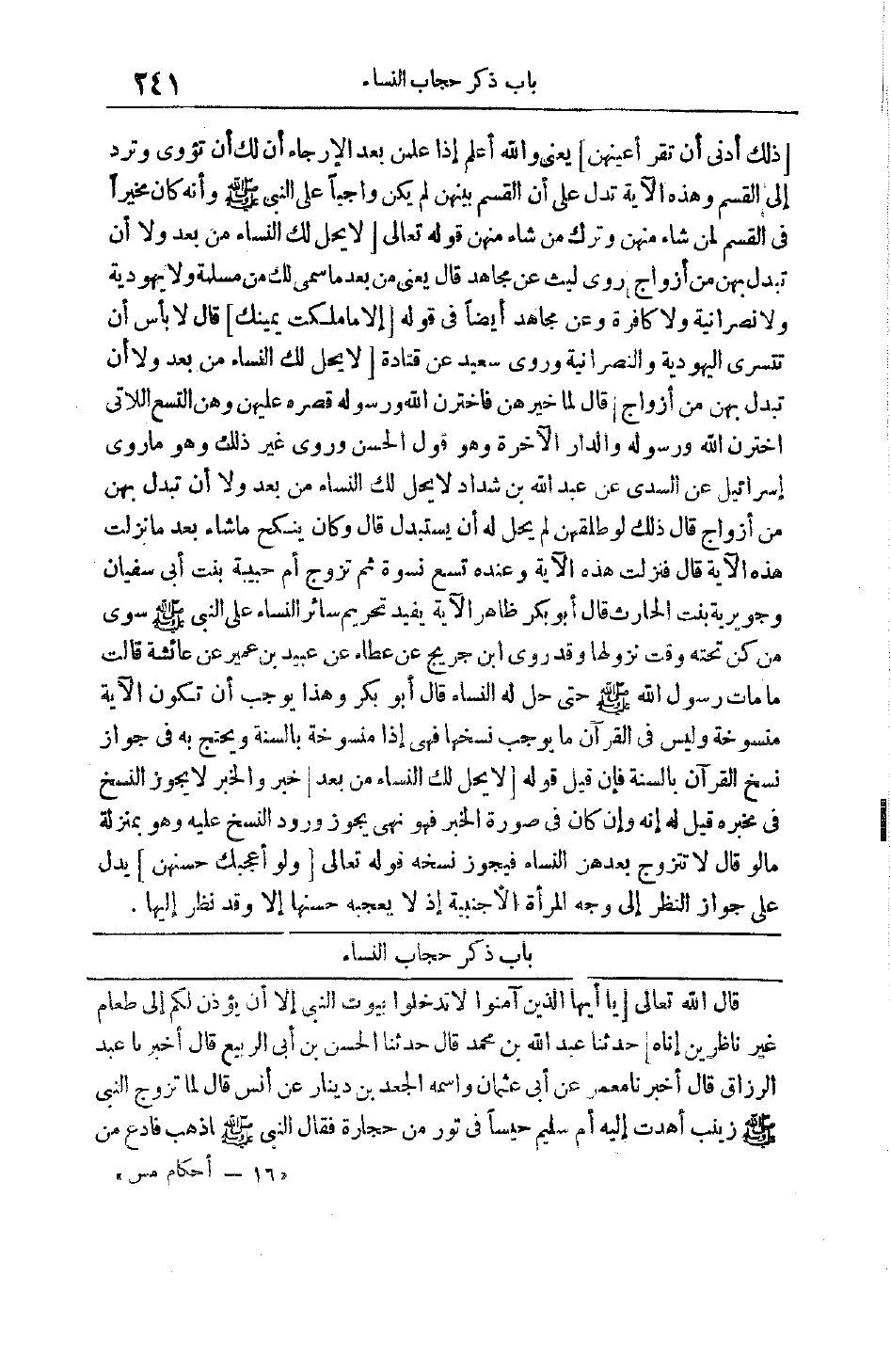 بَابُ ذِكْرُ حِجَابِ النِّسَاءِ