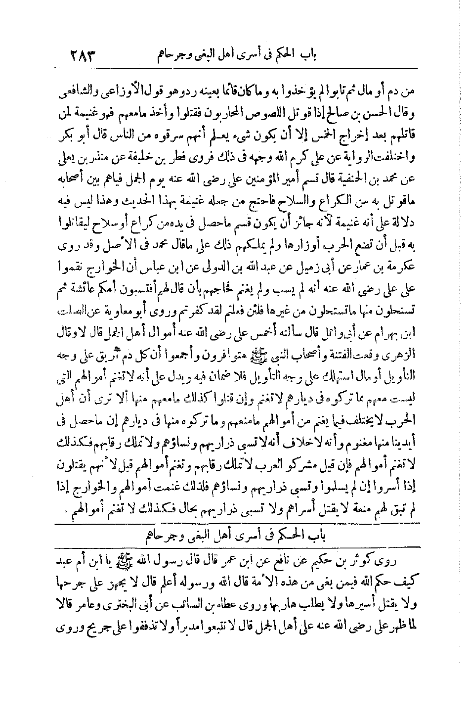 بَابٌ الْحُكْمُ فِي أَسْرَى أَهْلِ الْبَغْيِ وَجَرْحَاهُمْ