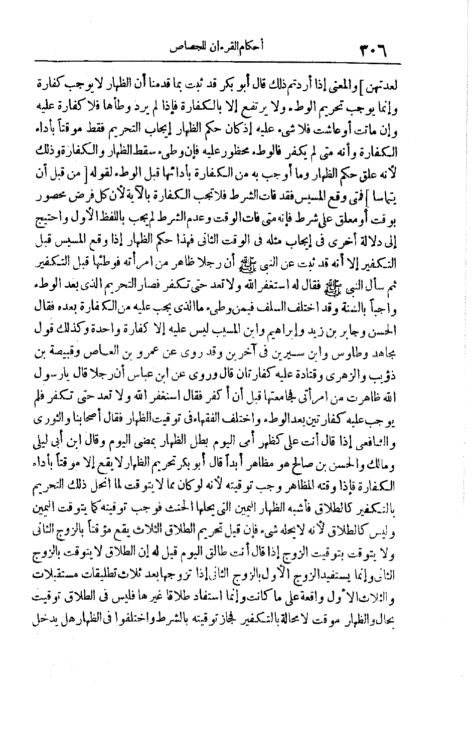فَلَمْ يُوجِبْ عَلَيْهِ كَفَّارَتَيْنِ بَعْدَ الْوَطْءِ وَاخْتَلَفَ الْفُقَهَاءُ فِي تَوْقِيتِ الظِّهَارِ فَقَالَ أَصْحَابُنَا وَالثَّوْرِيُّ وَالشَّافِعِيُّ إذَا قَالَ أَنْتِ عَلَيَّ كَظَهْرِ أُمِّي الْيَوْمَ بَطَلَ الظِّهَارُ بِمُضِيِّ الْيَوْمِ وَقَالَ ابْنُ أَبِي لَيْلَى وَمَالِكٌ وَالْحَسَنُ بْنُ صَالِحٍ هُوَ مُظَاهِرٌ أَبَدًا قَالَ أَبُو بَكْرٍ تَحْرِيمُ الظِّهَارِ لَا يَقَعُ إلَّا مُوَقَّتًا بِأَدَاءِ الْكَفَّارَةِ فَإِذَا وَقَّتَهُ الْمُظَاهِرُ وَجَبَ تَوْقِيتُهُ لِأَنَّهُ لَوْ كَانَ مِمَّا لَا يتوقت لَمَا انْحَلَّ ذَلِكَ التَّحْرِيمُ بِالتَّكْفِيرِ كَالطَّلَاقِ فَأَشْبَهَ الظِّهَارُ الْيَمِينَ الَّتِي يُحِلُّهَا الْحِنْثُ فَوَجَبَ تَوْقِيتُهُ كَمَا يتوقت الْيَمِينُ وَلَيْسَ كَالطَّلَاقِ لِأَنَّهُ لَا يُحِلُّهُ شَيْءٌ فَإِنْ قِيلَ تَحْرِيمُ الطَّلَاقِ الثَّلَاثِ يَقَعُ مؤقتا بِالزَّوْجِ الثَّانِي وَلَا يتوقت بِتَوْقِيتِ الزَّوْجِ إذَا قَالَ أَنْتِ طَالِقٌ الْيَوْمَ قِيلَ لَهُ إنَّ الطَّلَاقَ لَا يتوقت بِالزَّوْجِ الثَّانِي وَإِنَّمَا يَسْتَفِيدُ الزَّوْجُ الْأَوَّلُ بِالزَّوْجِ الثَّانِي إذَا تَزَوَّجَهَا بَعْدَ ثَلَاثِ تَطْلِيقَاتٍ مُسْتَقْبَلَاتٍ وَالثَّلَاثُ الْأُوَلُ وَاقِعَةٌ عَلَى مَا كَانَتْ وَإِنَّمَا اسْتَفَادَ طَلَاقًا غَيْرَهَا فَلَيْسَ فِي الطَّلَاقِ تَوْقِيتٌ بِحَالٍ وَالظِّهَارُ مُوَقَّتٌ لَا مَحَالَةَ بِالتَّكْفِيرِ فَجَازَ تَوْقِيتُهُ بِالشَّرْطِ وَاخْتَلَفُوا فِي الظِّهَارِ هَلْ يَدْخُلُ