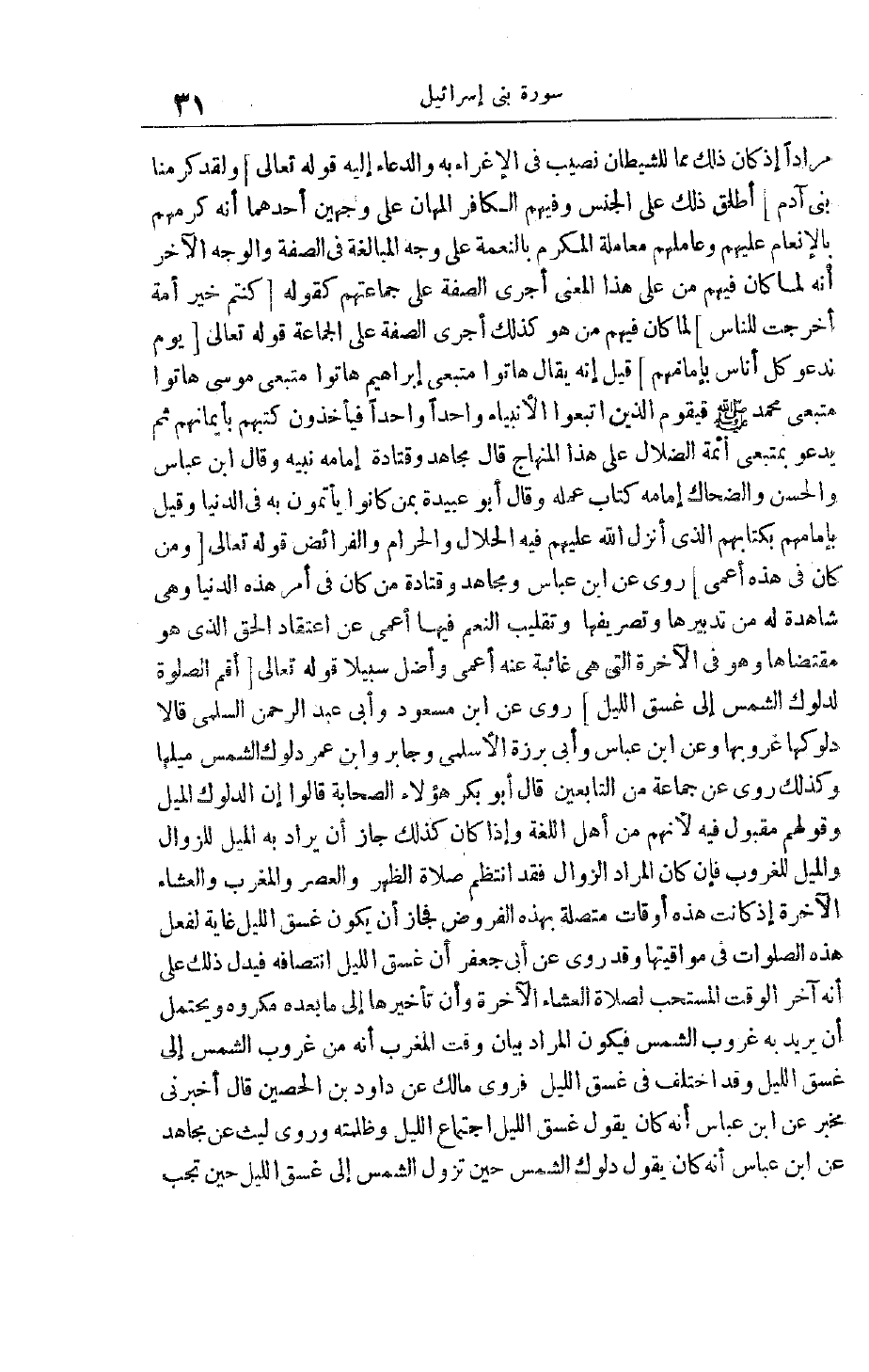 قَوْله تَعَالَى أَقِمِ الصَّلاةَ لِدُلُوكِ الشَّمْسِ إِلى غَسَقِ اللَّيْلِ رُوِيَ عَنْ ابْنِ مَسْعُودٍ وَأَبِي عَبْدِ الرَّحْمَنِ السِّلْمِيِّ قَالَا دُلُوكُهَا غُرُوبُهَا وَعَنْ ابْنِ عَبَّاسٍ وَأَبِي بَرْزَةَ الْأَسْلَمِيِّ وَجَابِرٍ وَابْنِ عُمَرَ دُلُوكُ الشَّمْسِ مَيْلُهَا وَكَذَلِكَ رُوِيَ عَنْ جَمَاعَةٍ مِنْ التَّابِعِينَ قَالَ أَبُو بَكْرٍ هَؤُلَاءِ الصَّحَابَةُ قَالُوا إنَّ الدُّلُوكَ الْمَيْلُ وَقَوْلُهُمْ مَقْبُولٌ فِيهِ لِأَنَّهُمْ مِنْ أَهْلِ اللُّغَةِ وَإِذَا كَانَ كَذَلِكَ جَازَ أَنْ يُرَادَ بِهِ الْمَيْلُ لِلزَّوَالِ وَالْمَيْلُ لِلْغُرُوبِ فَإِنْ كَانَ الْمُرَادُ الزَّوَالَ فَقَدْ انْتَظَمَ صَلَاةَ الظُّهْرِ وَالْعَصْرِ وَالْمَغْرِبِ وَالْعِشَاءِ الْآخِرَةِ إذْ كَانَتْ هذه أوقات مُتَّصِلَةً بِهَذِهِ الْفُرُوضِ فَجَازَ أَنْ يَكُونَ غَسَقُ اللَّيْلِ غَايَةً لِفِعْلِ هَذِهِ الصَّلَوَاتِ فِي مَوَاقِيتِهَا وَقَدْ رُوِيَ عَنْ أَبِي جَعْفَرٍ أَنَّ غَسَقَ اللَّيْلِ انْتِصَافُهُ فَيَدُلُّ ذَلِكَ عَلَى أَنَّهُ آخِرُ الْوَقْتِ الْمُسْتَحَبِّ لِصَلَاةِ الْعِشَاءِ الْآخِرَةِ وَأَنَّ تَأْخِيرَهَا إلَى مَا بَعْدَهُ مَكْرُوهٌ وَيُحْتَمَلُ أَنْ يُرِيدَ بِهِ غُرُوبَ الشَّمْسِ فَيَكُونُ الْمُرَادُ بَيَانَ وَقْتِ الْمَغْرِبِ أَنَّهُ مِنْ غُرُوبِ الشَّمْسِ إلَى غَسَقِ اللَّيْلِ وَقَدْ اُخْتُلِفَ فِي غَسَقِ اللَّيْلِ فَرَوَى مَالِكٌ عَنْ دَاوُد بْنِ الْحُصَيْنِ قَالَ أَخْبَرَنِي مُخْبِرٌ عَنْ ابْنِ عَبَّاسٍ أَنَّهُ كَانَ يَقُولُ غَسَقُ اللَّيْلِ اجْتِمَاعُ اللَّيْلِ وَظُلْمَتُهُ وَرَوَى لَيْثٌ عَنْ مُجَاهِدٍ عَنْ ابْنِ عَبَّاسٍ أَنَّهُ كَانَ يَقُولُ دُلُوكُ الشَّمْسِ حِينَ تَزُولُ الشَّمْسُ إلَى غسق الليل حين تجب
