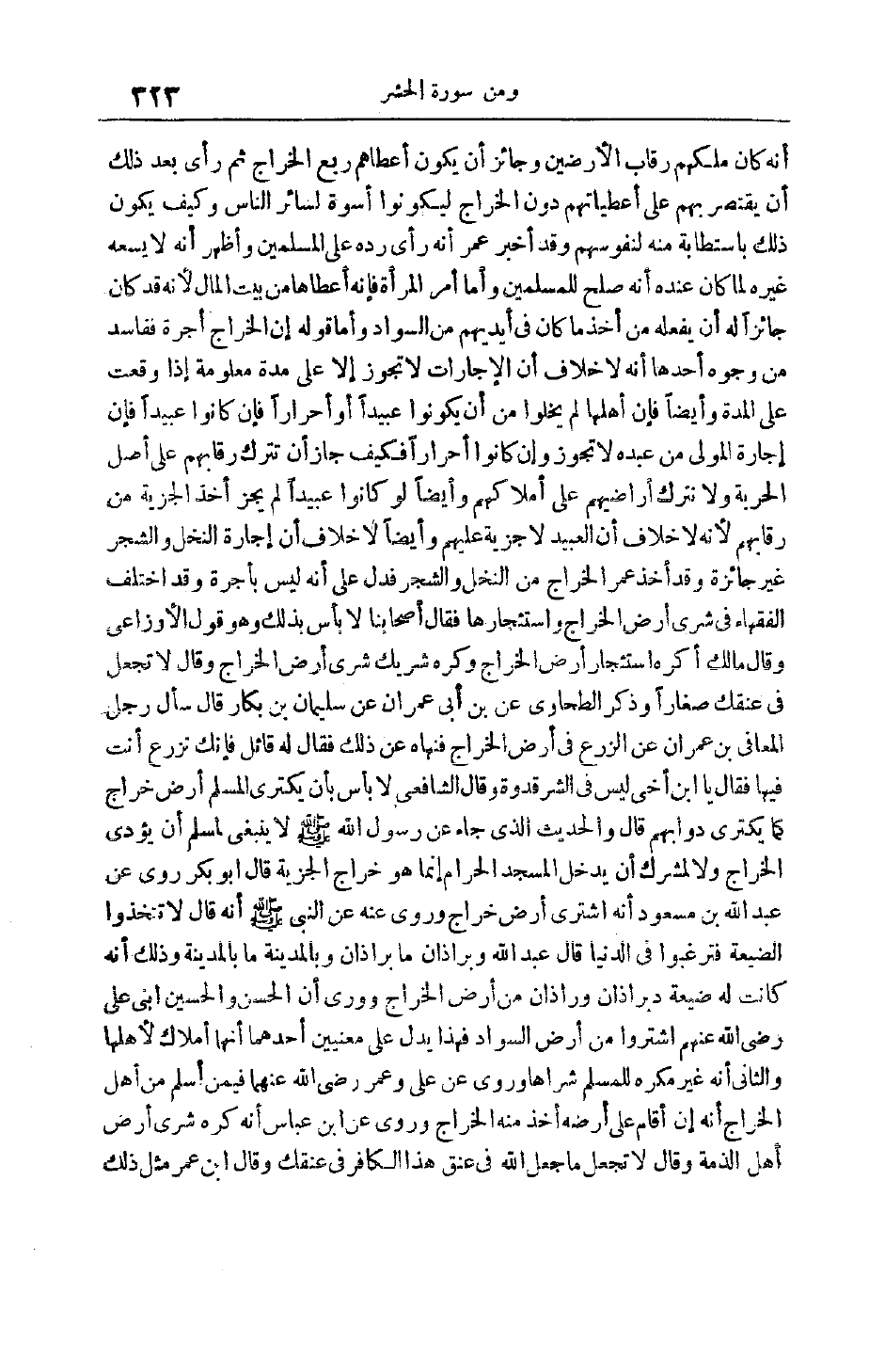 وَالْحَدِيثُ الَّذِي جَاءَ عَنْ رَسُولِ اللَّهِ صَلَّى اللَّهُ عَلَيْهِ وَسَلَّمَ لَا يَنْبَغِي لِمُسْلِمٍ أَنْ يُؤَدِّيَ الْخَرَاجَ وَلَا لِمُشْرِكٍ أَنْ يَدْخُلَ الْمَسْجِدَ الْحَرَامَ