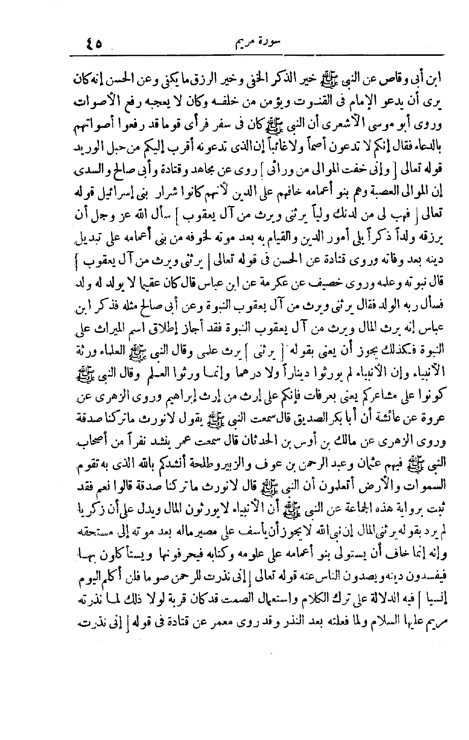 وَيَدُلُّ عَلَى أَنَّ زَكَرِيَّا لَمْ يُرِدْ بِقَوْلِهِ يَرِثُنِي الْمَالَ أَنَّ نَبِيَّ اللَّهِ لَا يَجُوزُ أَنْ يَأْسَفَ عَلَى مَصِيرِ مَالِهِ بَعْدِ مَوْتِهِ إلَى مُسْتَحِقِّهِ وَأَنَّهُ إنَّمَا خَافَ أَنْ يَسْتَوْلِيَ بَنُو أَعْمَامِهِ عَلَى عُلُومِهِ وَكِتَابِهِ فَيُحَرِّفُونَهَا وَيَسْتَأْكِلُونَ بِهَا فَيُفْسِدُونَ دِينَهُ وَيَصُدُّونَ النَّاسَ عَنْهُ