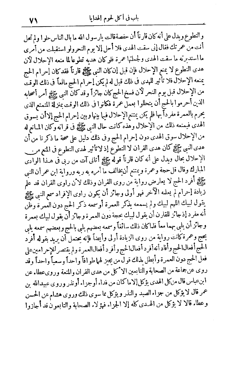 لَا يُعَارِضُ رِوَايَةَ مَنْ رَوَى الْقِرَانَ وَذَلِكَ لِأَنَّ رَاوِيَ الْقِرَانِ قَدْ عَلِمَ زِيَادَةَ إحْرَامٍ لَمْ يَعْلَمْهُ الْآخَرُ فَهُوَ أَوْلَى وَجَائِزٌ أَنْ يَكُونَ رَاوِي الْإِفْرَادِ سَمِعَ النَّبِيَّ صَلَّى اللَّهُ عَلَيْهِ وَسَلَّمَ يَقُولُ لَبَّيْكَ اللَّهُمَّ لَبَّيْكَ وَلَمْ يَسْمَعْهُ يَذْكُرُ الْعُمْرَةَ أَوْ سَمِعَهُ ذَكَرَ الْحَجَّ دُونَ الْعُمْرَةِ وَظَنَّ أَنَّهُ مُفْرِدٌ إذْ جَائِزٌ لِلْقَارِنِ أَنْ يَقُولَ لَبَّيْكَ بِحَجَّةٍ دُونَ الْعُمْرَةِ وَجَائِزٌ أَنْ يَقُولَ لَبَّيْكَ بِعُمْرَةٍ وَجَائِزٌ أَنْ يُلَبِّيَ بِهِمَا مَعًا فَلَمَّا كَانَ ذَلِكَ سَائِغًا وَسَمِعَهُ بَعْضُهُمْ يُلَبِّي بِالْحَجِّ وَبَعْضُهُمْ سَمِعَهُ يُلَبِّي بِحَجٍّ وَعُمْرَةٍ كَانَتْ رِوَايَةُ مَنْ رَوَى الزِّيَادَةَ أَوْلَى وَأَيْضًا فإنه يحتمل أن يريد بقوله أفراد الْحَجَّ أَفْعَالَ الْحَجِّ وَأَفَادَ أَنَّهُ أَفْرَدَ أَفْعَالَ الْحَجِّ وَأَفْرَدَ أَفْعَالَ الْعُمْرَةِ وَلَمْ يَقْتَصِرْ لِلْإِحْرَامَيْنِ عَلَى فِعْلِ الْحَجِّ دُونَ الْعُمْرَةِ وَأَبْطَلَ بِذَلِكَ قَوْلَ مَنْ يُجِيزُ لَهُمَا طَوَافًا وَاحِدًا وَسَعْيًا وَاحِدًا وَقَدْ رُوِيَ عَنْ جَمَاعَةٍ مِنْ الصَّحَابَةِ وَالتَّابِعِينَ الْأَكْلُ مِنْ هَدْيِ الْقِرَانِ وَالْمُتْعَةِ وَرَوَى عَطَاءٌ عَنْ ابْنِ عَبَّاسٍ قَالَ مَنْ كُلِّ الْهَدْيِ يُؤْكَلُ إلَّا مَا كَانَ مِنْ فِدَاءٍ أَوْ جَزَاءٍ أَوْ نَذْرٍ وَرَوَى عُبَيْدُ اللَّهِ بْنُ عُمَرَ قَالَ لَا يُؤْكَلُ مِنْ جَزَاءِ الصَّيْدِ وَالنَّذْرِ وَيُؤْكَلُ مِمَّا سِوَى ذَلِكَ وَرَوَى هِشَامٌ عَنْ الْحَسَنِ وَعَطَاءٍ قَالَا لَا يُؤْكَلُ مِنْ الْهَدْيِ كُلِّهِ إلَّا الْجَزَاءُ فَهَؤُلَاءِ الصَّحَابَةُ وَالتَّابِعُونَ قَدْ أَجَازُوا