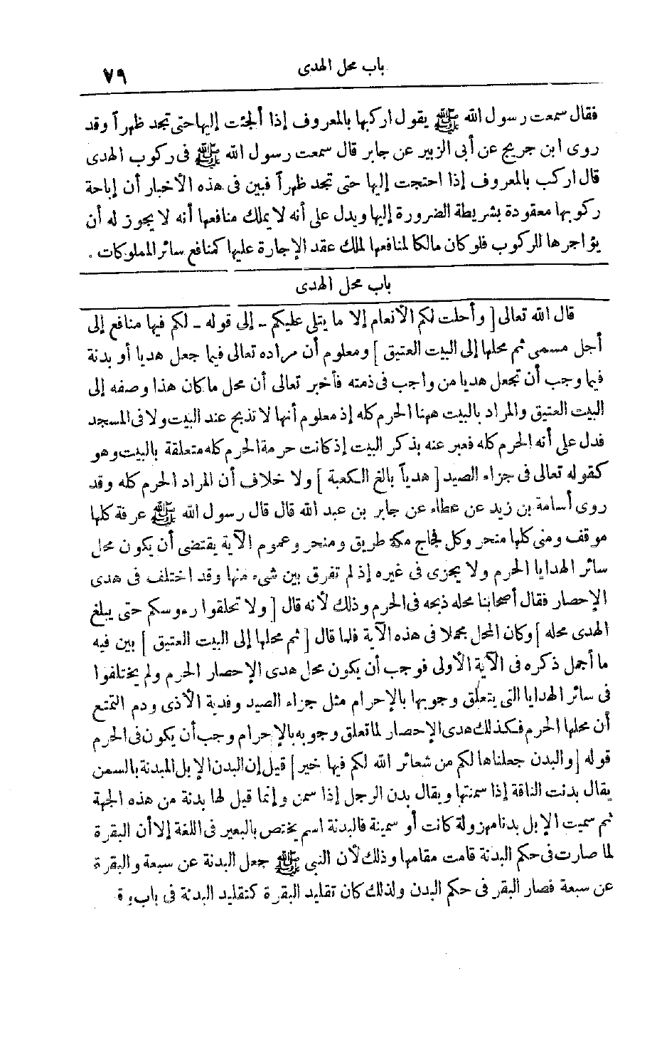 قَالَ اللَّهُ تَعَالَى وَأُحِلَّتْ لَكُمُ الْأَنْعامُ إِلَّا مَا يُتْلى عَلَيْكُمْ- إلَى قَوْلِهِ- لَكُمْ فِيها مَنافِعُ إِلى أَجَلٍ مُسَمًّى ثُمَّ مَحِلُّها إِلَى الْبَيْتِ الْعَتِيقِ وَمَعْلُومٌ أَنَّ مُرَادَهُ تَعَالَى فِيمَا جُعِلَ هَدْيًا أو بدنة فِيمَا وَجَبَ أَنْ تُجْعَلَ هَدْيًا مِنْ وَاجِبٍ فِي ذِمَّتِهِ فَأَخْبَرَ تَعَالَى أَنَّ مَحِلَّ مَا كَانَ هَذَا وَصْفُهُ إلَى الْبَيْتِ الْعَتِيقِ وَالْمُرَادُ بالبيت هاهنا الْحَرَمُ كُلُّهُ إذْ مَعْلُومٌ أَنَّهَا لَا تُذْبَحُ عِنْدَ الْبَيْتِ وَلَا فِي الْمَسْجِدِ فَدَلَّ عَلَى أَنَّهُ الْحَرَمُ كُلُّهُ فَعَبَّرَ عَنْهُ بِذِكْرِ الْبَيْتِ إذْ كَانَتْ حُرْمَةُ الْحَرَمِ كُلِّهِ مُتَعَلِّقَةً بِالْبَيْتِ وَهُوَ كَقَوْلِهِ تَعَالَى فِي جَزَاءِ الصَّيْدِ هَدْياً بالِغَ الْكَعْبَةِ وَلَا خِلَافَ أَنَّ الْمُرَادَ الْحَرَمُ كُلُّهُ