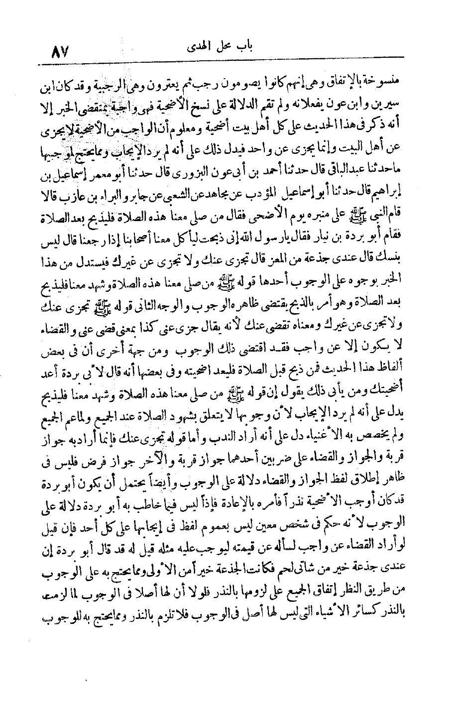 قَوْلَهُ صَلَّى اللَّهُ عَلَيْهِ وَسَلَّمَ مَنْ صَلَّى مَعَنَا هَذِهِ الصَّلَاةَ وَشَهِدَ مَعَنَا فَلْيَذْبَحْ
