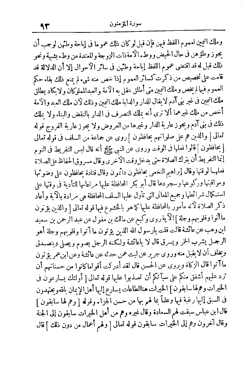 قوله تعالى وَالَّذِينَ هُمْ عَلى صَلَواتِهِمْ يُحافِظُونَ رُوِيَ عَنْ جَمَاعَةٍ مِنْ السَّلَفِ فِي قَوْله تعالى يُحافِظُونَ قَالُوا فِعْلُهَا فِي الْوَقْتِ