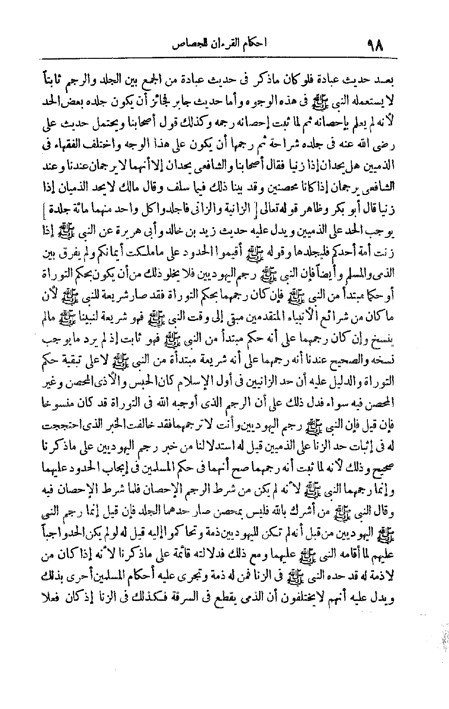 بَعْدَ حَدِيثِ عُبَادَةَ فَلَوْ كَانَ مَا ذُكِرَ فِي حَدِيثِ عُبَادَةَ مِنْ الْجَمْعِ بَيْنَ الْجَلْدِ والرجم ثابتا لا يستعمله النَّبِيِّ صَلَّى اللَّهُ عَلَيْهِ وَسَلَّمَ فِي هَذِهِ الْوُجُوهِ وَأَمَّا حَدِيثُ جَابِرٍ فَجَائِزٌ أَنْ يَكُونَ جَلَدَهُ بَعْضَ الْحَدِّ لِأَنَّهُ لَمْ يَعْلَمْ بِإِحْصَانِهِ ثُمَّ لَمَّا ثَبَتَ إحْصَانُهُ رَجَمَهُ وَكَذَلِكَ قَوْلُ أصحابنا ويحتمل حديث على رضى الله عنه فِي جَلْدِهِ شُرَاحَةَ ثُمَّ رَجْمِهَا أَنْ يَكُونَ عَلَى هَذَا الْوَجْهِ وَاخْتَلَفَ الْفُقَهَاءُ فِي الذِّمِّيِّينَ هَلْ يُحَدَّانِ إذَا زَنَيَا فَقَالَ أَصْحَابُنَا وَالشَّافِعِيُّ يُحَدَّانِ إلَّا أَنَّهُمَا لَا يُرْجَمَانِ عِنْدَنَا وَعِنْدَ الشَّافِعِيِّ يُرْجَمَانِ إذَا كَانَا مُحْصَنَيْنِ وَقَدْ بَيَّنَّا ذَلِكَ فِيمَا سَلَفَ وَقَالَ مَالِكٌ لَا يُحَدُّ الذِّمِّيَّانِ إذَا زَنَيَا قَالَ أَبُو بَكْرٍ وَظَاهِرُ قَوْله تَعَالَى الزَّانِيَةُ وَالزَّانِي فَاجْلِدُوا كُلَّ واحِدٍ مِنْهُما مِائَةَ جَلْدَةٍ يُوجِبُ الْحَدَّ عَلَى الذِّمِّيِّينَ وَيَدُلُّ عَلَيْهِ