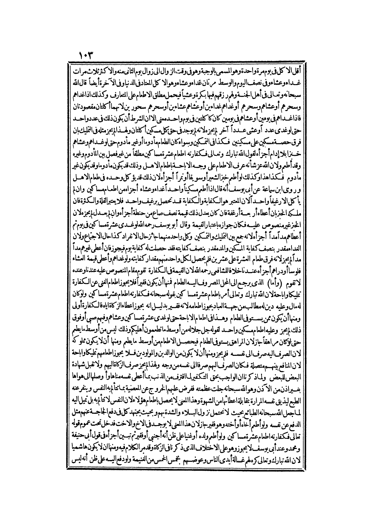 وَمِنْهَا أَنْ يَكُونَ مِمَّنْ يَسْتَوْفِي الطَّعَامَ، وَهَذَا فِي إطْعَامِ الْإِبَاحَةِ حَتَّى لَوْ غَدَّى عَشَرَةَ مَسَاكِينَ وَعَشَّاهُمْ وَفِيهِمْ صَبِيٌّ أَوْ فَوْقَ ذَلِكَ لَمْ يَجُزْ وَعَلَيْهِ إطْعَامُ مِسْكِينٍ وَاحِدٍ لِقَوْلِهِ - جَلَّ جَلَالُهُ -: {مِنْ أَوْسَطِ مَا تُطْعِمُونَ أَهْلِيكُمْ} [المائدة: 89] وَذَلِكَ لَيْسَ مِنْ أَوْسَطِ مَا يُطْعَمُ، حَتَّى لَوْ كَانَ مُرَاهِقًا جَازَ لِأَنَّ الْمُرَاهِقَ يَسْتَوْفِي الطَّعَامَ فَيَحْصُلُ الْإِطْعَامُ مِنْ أَوْسَطِ مَا يُطْعَمُ وَمِنْهَا أَنْ لَا يَكُونَ مَمْلُوكَهُ لِأَنَّ الصَّرْفَ إلَيْهِ صَرْفٌ إلَى نَفْسِهِ فَلَمْ يَجُزْ وَمِنْهَا أَنْ لَا يَكُونَ مِنْ الْوَالِدَيْنِ وَالْمَوْلُودِينَ فَلَا يَجُوزُ إطْعَامُهُمْ تَمْلِيكًا وَإِبَاحَةً لِأَنَّ الْمَنَافِعَ بَيْنَهُمْ مُتَّصِلَةٌ فَكَانَ الصَّرْفُ إلَيْهِمْ صَرْفًا إلَى نَفْسِهِ مِنْ وَجْهٍ، وَلِهَذَا لَمْ يَجُزْ صَرْفُ الزَّكَاةِ إلَيْهِمْ، وَلَا تُقْبَلُ شَهَادَةُ الْبَعْضِ لِلْبَعْضِ، وَلِمَا ذَكَرْنَا أَنَّ الْوَاجِبَ بِحَقِّ التَّكْفِيرِ لِمَا اقْتَرَفَ مِنْ الذَّنْبِ بِمَا أَعْطَى نَفْسَهُ مُنَاهَا وَأَوْصَلَهَا إلَى هَوَاهَا بِغَيْرِ إذْنٍ مِنْ الْآذِنِ وَهُوَ اللَّهُ - سُبْحَانَهُ جَلَّتْ عَظَمَتُهُ - فَفَرَضَ عَلَيْهِمْ الْخُرُوجَ عَنْ الْمَعْصِيَةِ بِمَا تَتَأَلَّمُ بِهِ النَّفْسُ وَيَنْفِرُ عَنْهُ الطَّبْعُ لِيُذِيقَ نَفْسَهُ الْمَرَارَةَ بِمُقَابَلَةِ إعْطَائِهَا مِنْ الشَّهْوَةِ.