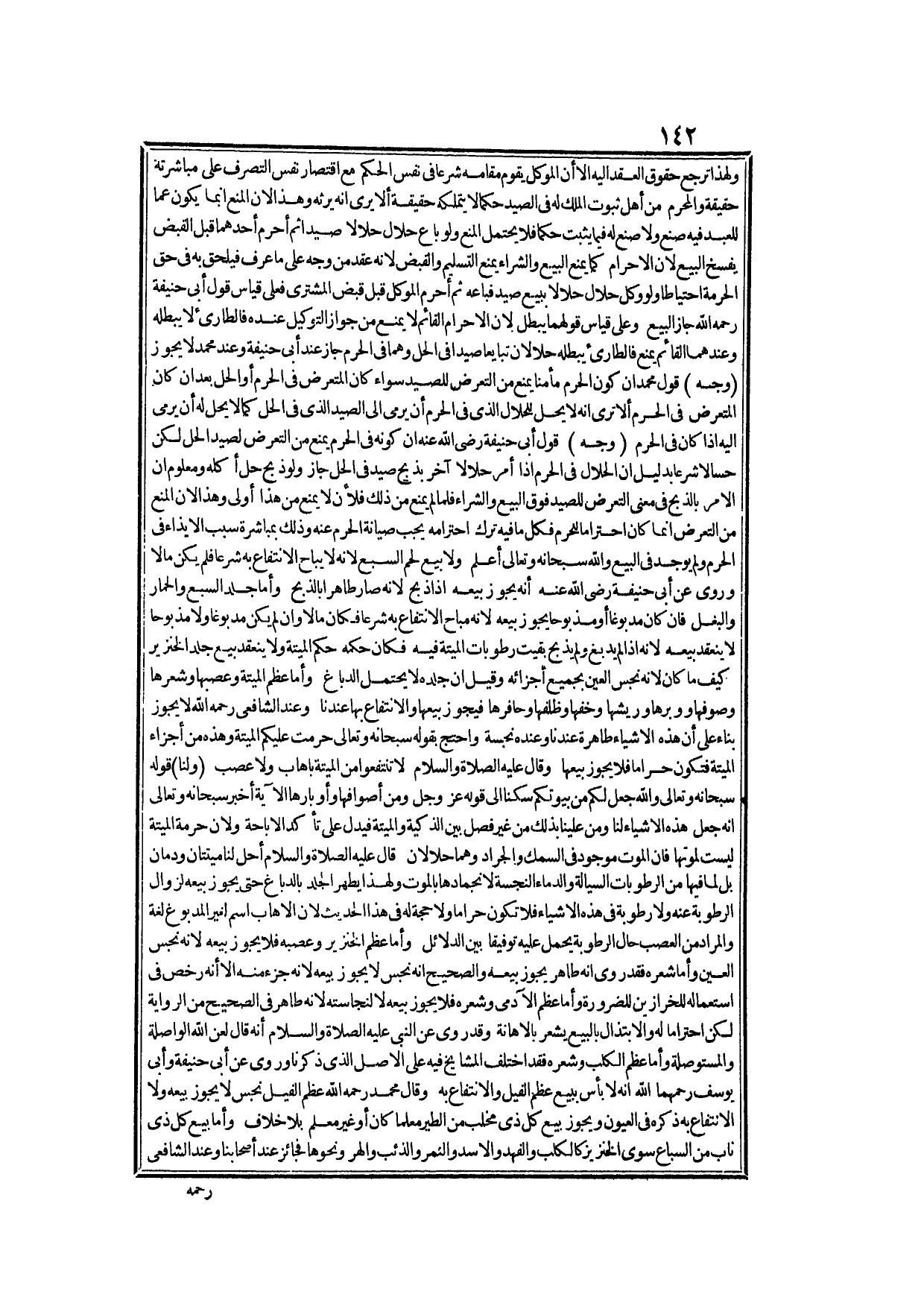 وَلِهَذَا تَرْجِعُ حُقُوقُ الْعَقْدِ إلَيْهِ إلَّا أَنَّ الْمُوَكِّلَ يَقُومُ مَقَامَهُ شَرْعًا فِي نَفْسِ الْحُكْمِ مَعَ اقْتِصَارِ نَفْسِ التَّصَرُّفِ عَلَى مُبَاشَرَتِهِ حَقِيقَةً، وَالْمُحْرِمُ مِنْ أَهْلِ ثُبُوتِ الْمِلْكِ لَهُ فِي الصَّيْدِ حُكْمًا لَا يَتَمَلَّكُهُ حَقِيقَةً أَلَا يَرَى أَنَّهُ يَرِثُهُ؟ وَهَذَا؛ لِأَنَّ الْمَنْعَ إنَّمَا يَكُونُ عَمَّا لِلْعَبْدِ فِيهِ صُنْعٌ، وَلَا صُنْعَ لَهُ فِيمَا يُثْبِتُ حُكْمًا فَلَا يَحْتَمِلُ الْمَنْعَ وَلَوْ بَاعَ حَلَالٌ حَلَالًا صَيْدًا ثُمَّ أَحْرَمَ أَحَدُهُمَا قَبْلَ الْقَبْضِ يُفْسَخُ الْبَيْعُ؛ لِأَنَّ الْإِحْرَامَ كَمَا يَمْنَعُ الْبَيْعَ وَالشِّرَاءَ يَمْنَعُ التَّسْلِيمَ وَالْقَبْضَ؛ لِأَنَّهُ عَقْدٌ مِنْ وَجْهٍ عَلَى مَا عُرِفَ فَيُلْحَقُ بِهِ فِي حَقِّ الْحُرْمَةِ احْتِيَاطًا وَلَوْ وَكَّلَ حَلَالٌ حَلَالًا بِبَيْعِ صَيْدٍ فَبَاعَهُ ثُمَّ أَحْرَمَ الْمُوَكِّلُ قَبْلَ قَبْضِ الْمُشْتَرِي فَعَلَى قِيَاسِ قَوْلِ أَبِي حَنِيفَةَ - رَحِمَهُ اللَّهُ - جَازَ الْبَيْعُ وَعَلَى قِيَاسِ قَوْلِهِمَا: يَبْطُلُ لِأَنَّ الْإِحْرَامَ الْقَائِمَ لَا يَمْنَعُ مِنْ جَوَازِ التَّوْكِيلِ عِنْدَهُ، فَالطَّارِئُ لَا يُبْطِلُهُ، وَعِنْدَهُمَا الْقَائِمُ يَمْنَعُ، فَالطَّارِئُ يُبْطِلُهُ حَلَالَانِ تَبَايَعَا صَيْدًا فِي الْحِلِّ، وَهُمَا فِي الْحَرَمِ جَازَ عِنْدَ أَبِي حَنِيفَةَ وَعِنْدَ مُحَمَّدٍ: لَا يَجُوزُ.