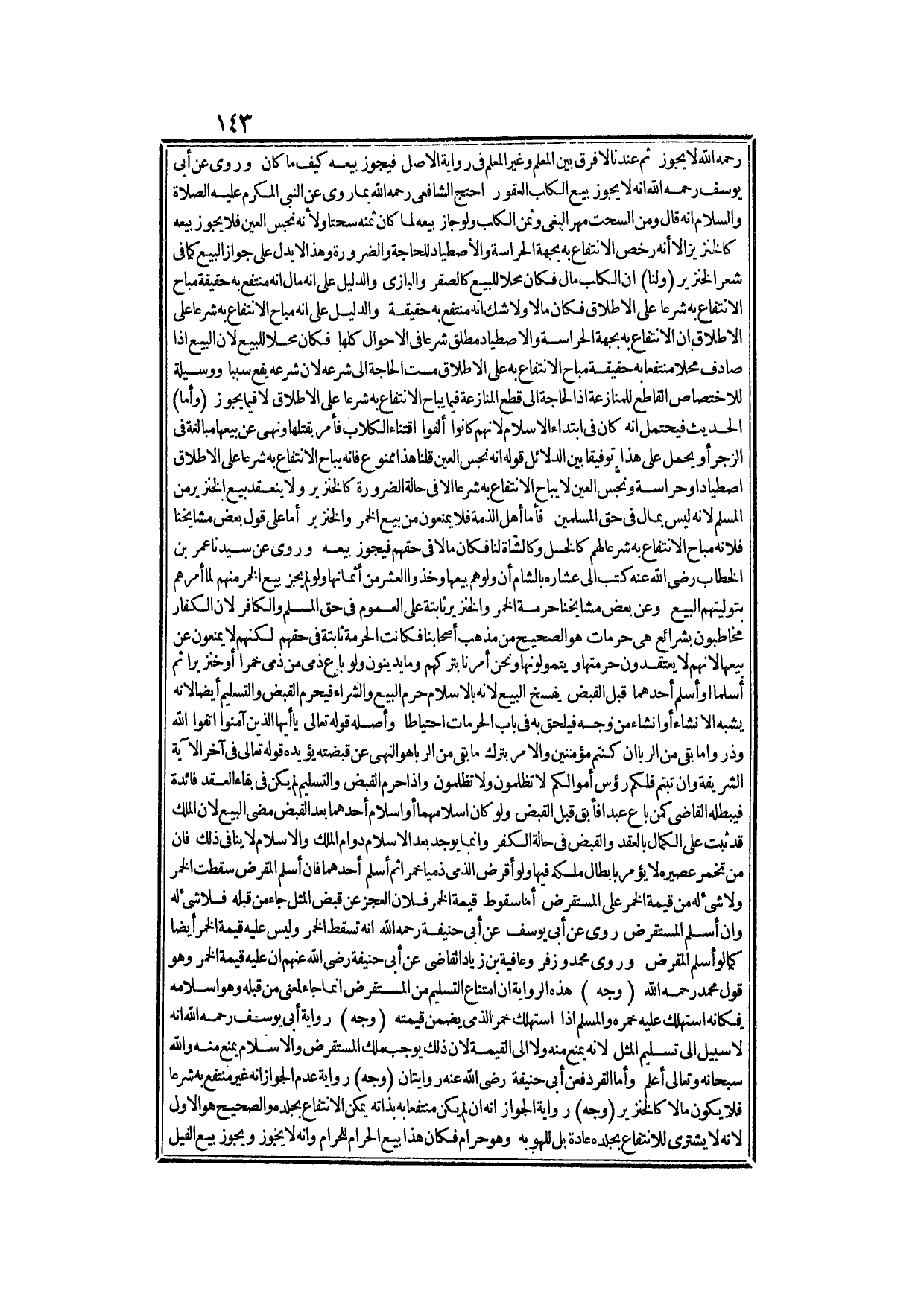 (وَجْهُ) رِوَايَةِ عَدَمِ الْجَوَازِ أَنَّهُ غَيْرُ مُنْتَفَعٍ بِهِ شَرْعًا فَلَا يَكُونَ مَالًا كَالْخِنْزِيرِ.