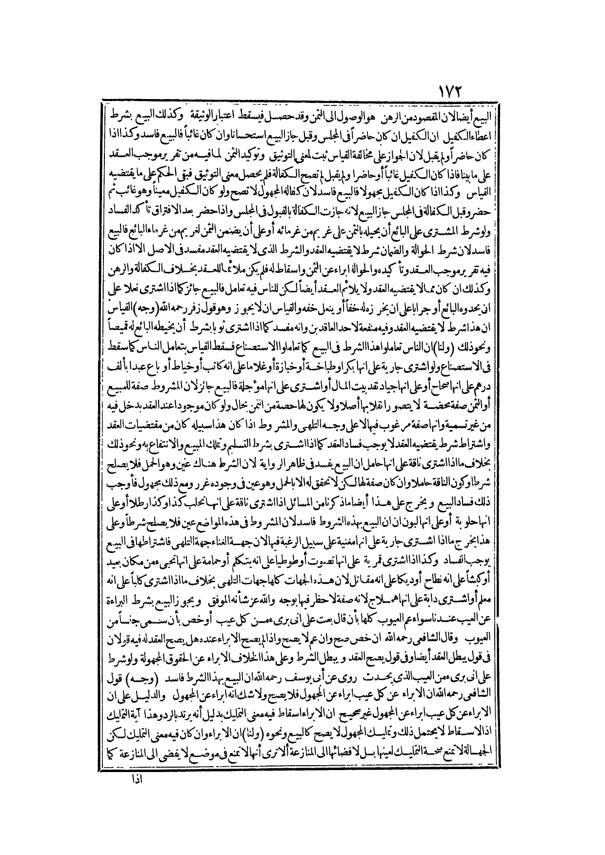 وَكَذَلِكَ الْبَيْعُ بِشَرْطِ إعْطَاءِ الْكَفِيلِ أَنَّ الْكَفِيلَ إنْ كَانَ حَاضِرًا فِي الْمَجْلِسِ وَقَبِلَ؛ جَازَ الْبَيْعُ اسْتِحْسَانًا وَإِنْ كَانَ غَائِبًا فَالْبَيْعُ فَاسِدٌ وَكَذَا إذَا كَانَ حَاضِرًا وَلَمْ يَقْبَلْ؛ لِأَنَّ الْجَوَازَ عَلَى مُخَالَفَةِ الْقِيَاسِ ثَبَتَ لِمَعْنَى التَّوْثِيقِ وَتَوْكِيدِ الثَّمَنِ لِمَا فِيهِ مِنْ تَقْرِيرِ مُوجَبِ الْعَقْدِ عَلَى مَا بَيَّنَّا فَإِذَا كَانَ الْكَفِيلُ غَائِبًا أَوْ حَاضِرًا وَلَمْ يَقْبَلْ؛ لَمْ تَصِحَّ الْكَفَالَةُ فَلَمْ يَحْصُلْ مَعْنَى التَّوْثِيقِ فَبَقِيَ الْحُكْمُ عَلَى مَا يَقْتَضِيهِ الْقِيَاسُ، وَكَذَا إذَا كَانَ الْكَفِيلُ مَجْهُولًا فَالْبَيْعُ فَاسِدٌ؛ لِأَنَّ كَفَالَةَ الْمَجْهُولِ لَا تَصِحُّ وَلَوْ كَانَ الْكَفِيلُ مُعَيَّنًا وَهُوَ غَائِبٌ ثُمَّ حَضَرَ وَقَبِلَ الْكَفَالَةَ فِي الْمَجْلِسِ جَازَ الْبَيْعُ؛ لِأَنَّهُ جَازَتْ الْكَفَالَةُ بِالْقَبُولِ فِي الْمَجْلِسِ، وَإِذَا حَضَرَ بَعْدَ الِافْتِرَاقِ تَأَكَّدَ الْفَسَادُ.