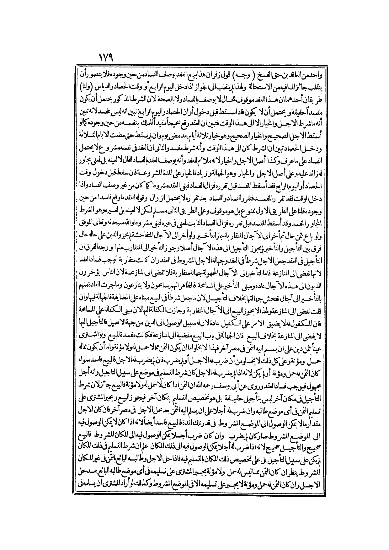 وَاحِدٍ مِنْ الْعَاقِدَيْنِ حَقُّ الْفَسْخَ، (وَجْهُ) قَوْلِ زُفَرَ أَنَّ هَذَا بَيْعٌ انْعَقَدَ بِوَصْفِ الْفَسَادِ مِنْ حِينِ وُجُودِهِ فَلَا يُتَصَوَّرُ أَنْ يَنْقَلِبَ جَائِزًا؛ لِمَا فِيهِ مِنْ الِاسْتِحَالَةِ، وَلِهَذَا لَمْ يَنْقَلِبْ إلَى الْجَوَازِ إذَا دَخَلَ الْيَوْمُ الرَّابِعُ، أَوْ وَقْتُ الْحَصَادِ، وَالدِّيَاسِ.