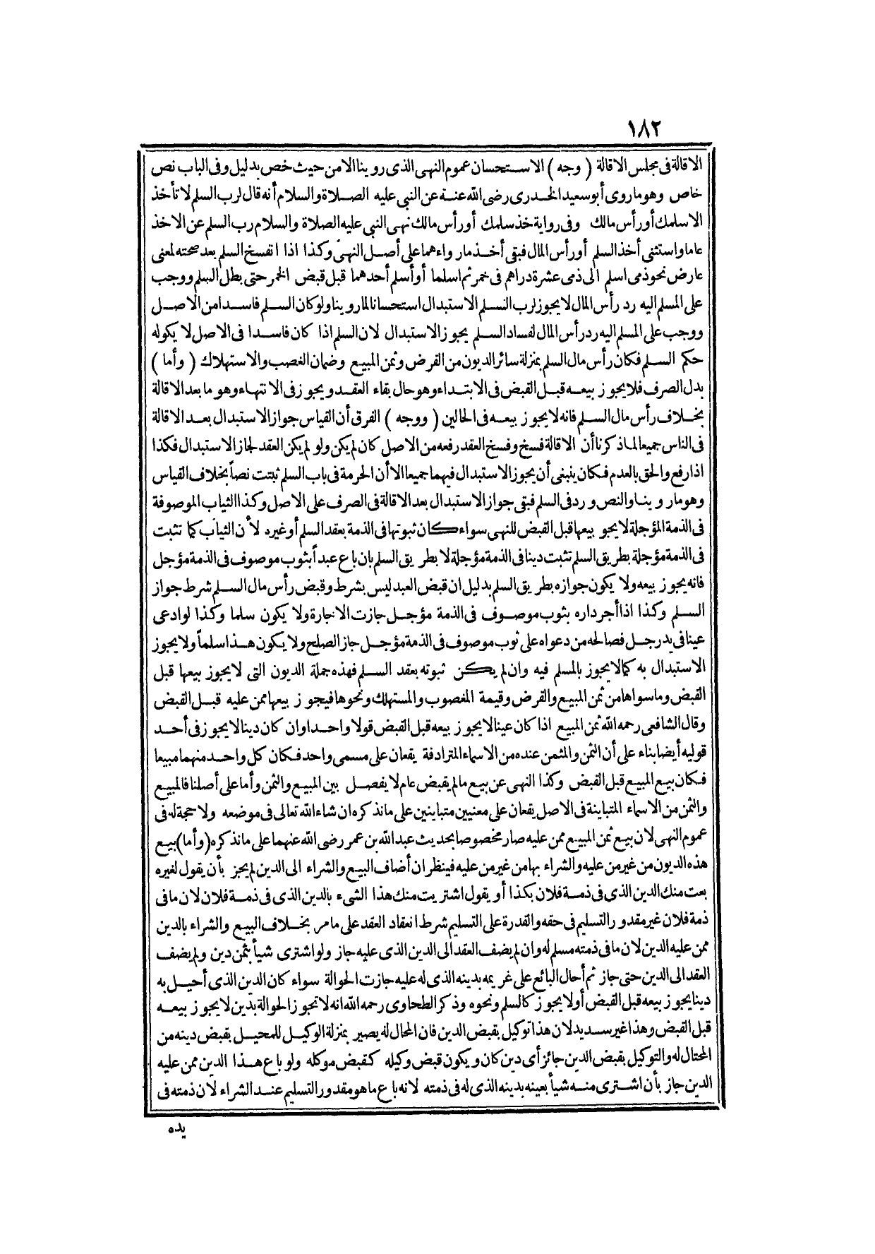 (وَأَمَّا) بَدَلُ الصَّرْفِ فَلَا يَجُوزُ بَيْعُهُ قَبْلَ الْقَبْضِ فِي الِابْتِدَاءِ، وَهُوَ حَالُ بَقَاءِ الْعَقْدِ، وَيَجُوزُ فِي الِانْتِهَاءِ، وَهُوَ مَا بَعْدَ الْإِقَالَةِ، بِخِلَافِ رَأْسِ مَالِ السَّلَمِ فَإِنَّهُ لَا يَجُوزُ بَيْعُهُ فِي الْحَالَيْنِ.