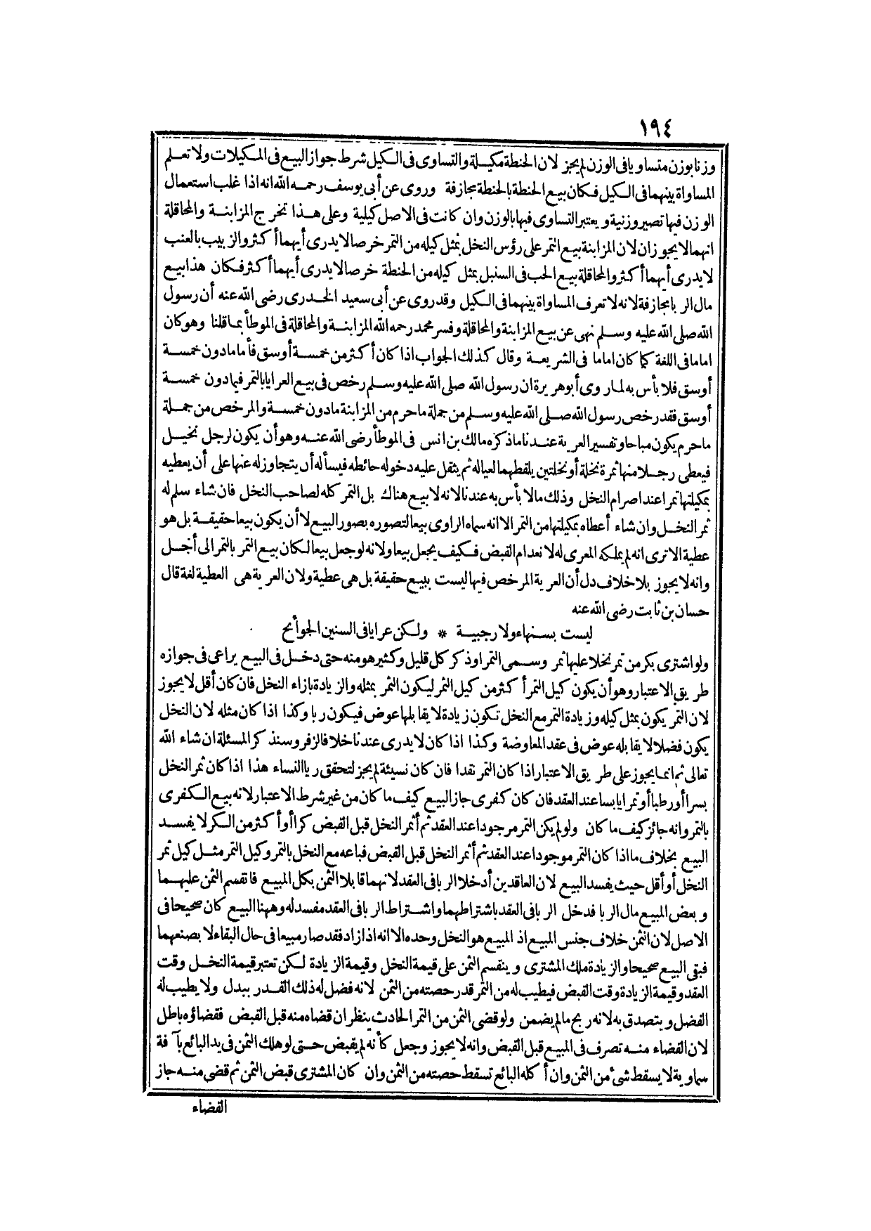 وَلَوْ اشْتَرَى بِكُرٍّ مِنْ تَمْرٍ نَخْلًا عَلَيْهَا ثَمَرٌ، وَسَمَّى التَّمْرَ أَوْ ذَكَرَ كُلَّ قَلِيلٍ وَكَثِيرٍ هُوَ مِنْهُ حَتَّى دَخَلَ فِي الْبَيْعِ يُرَاعَى فِي جَوَازِهِ طَرِيقُ الِاعْتِبَارِ، وَهُوَ أَنْ يَكُونَ كَيْلُ التَّمْرِ أَكْثَرَ مِنْ كَيْلِ الثَّمَرِ؛ لِيَكُونَ الثَّمَرُ بِمِثْلِهِ وَالزِّيَادَةُ بِإِزَاءِ النَّخْلِ، فَإِنْ كَانَ أَقَلَّ لَا يَجُوزُ؛ لِأَنَّ التَّمْرَ يَكُونُ بِمِثْلِ كَيْلِهِ، وَزِيَادَةُ التَّمْرِ مَعَ النَّخْلِ تَكُونُ زِيَادَةً لَا يُقَابِلُهَا عِوَضٌ، فَيَكُونُ رِبًا.