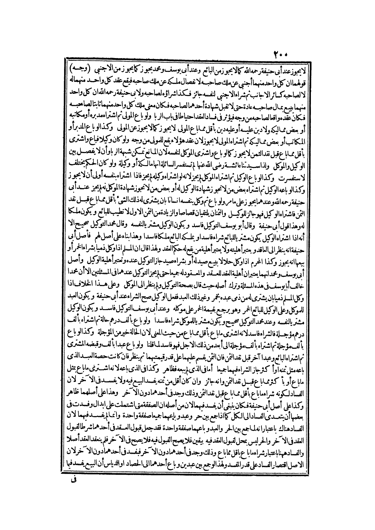 وَأَصْلُ أَبِي يُوسُفَ وَمُحَمَّدٍ أَنَّهُمَا يَعْتَبِرَانِ أَهْلِيَّةَ الْعَقْدِ لِلْعَقْدِ وَالْمَعْقُودِ لَهُ جَمِيعًا حَتَّى لَمْ يَجُزْ التَّوْكِيلُ عِنْدَهُمَا فِي الْمَسْأَلَتَيْنِ، إلَّا أَنَّ مُحَمَّدًا خَالَفَ أَبَا يُوسُفَ فِي هَذِهِ الْمَسْأَلَةِ وَتَرَكَ أَصْلَهُ حَيْثُ قَالَ بِصِحَّةِ التَّوْكِيلِ وَلَمْ يَنْظُرْ إلَى الْمُوَكِّلِ، وَعَلَى هَذَا الْخِلَافِ إذَا وَكَّلَ الْمُسْلِمُ ذِمِّيًّا بِأَنْ يَشْتَرِيَ لَهُ مِنْ ذِمِّيٍّ عَبْدَهُ بِخَمْرٍ وَغَيْرِ ذَلِكَ الْعَبْدِ فَفَعَلَ الْوَكِيلُ صَحَّ الشِّرَاءُ عِنْدَ أَبِي حَنِيفَةَ وَيَكُونُ الْعَبْدُ لِلْمُوَكِّلِ وَعَلَى الْوَكِيلِ لِلْبَائِعِ الْخَمْرُ، وَهُوَ يَرْجِعُ بِقِيمَةِ الْخَمْرِ عَلَى مُوَكِّلِهِ، وَعِنْدَ أَبِي يُوسُفَ التَّوْكِيلُ فَاسِدٌ وَيَكُونُ الْوَكِيلُ مُشْتَرِيًا لِنَفْسِهِ، وَعِنْدَ مُحَمَّدٍ التَّوْكِيلُ صَحِيحٌ وَيَكُونُ مُشْتَرِيًا لِلْمُوَكِّلِ شِرَاءً فَاسِدًا وَلَوْ بَاعَ بِأَلْفِ دِرْهَمٍ حَالَّةٍ، ثُمَّ اشْتَرَاهُ بِأَلْفِ دِرْهَمٍ مُؤَجَّلَةٍ فَالشِّرَاءُ فَاسِدٌ لِأَنَّهُ اشْتَرَى مَا بَاعَ بِأَقَلَّ مِمَّا بَاعَ مِنْ حَيْثُ الْمَعْنَى، لِأَنَّ الْحَالَّةَ خَيْرٌ مِنْ الْمُؤَجَّلَةِ وَكَذَا لَوْ بَاعَ بِأَلْفٍ مُؤَجَّلَةٍ، ثُمَّ اشْتَرَاهُ بِأَلْفٍ مُؤَجَّلَةٍ إلَى أَبْعَدَ مِنْ ذَلِكَ الْأَجَلِ فَهُوَ فَاسِدٌ لِمَا قُلْنَا.