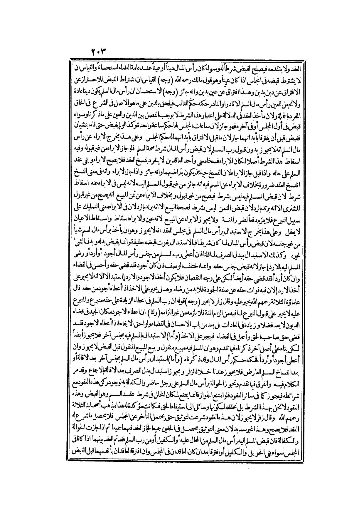 الْعَقْدَ وَلَا يَتَقَدَّمُهُ فَيَصْلُحُ الْقَبْضُ شَرْطًا لَهُ، وَسَوَاءٌ كَانَ رَأْسُ الْمَالِ دَيْنًا أَوْ عَيْنًا عِنْدَ عَامَّةِ الْعُلَمَاءِ اسْتِحْسَانًا.