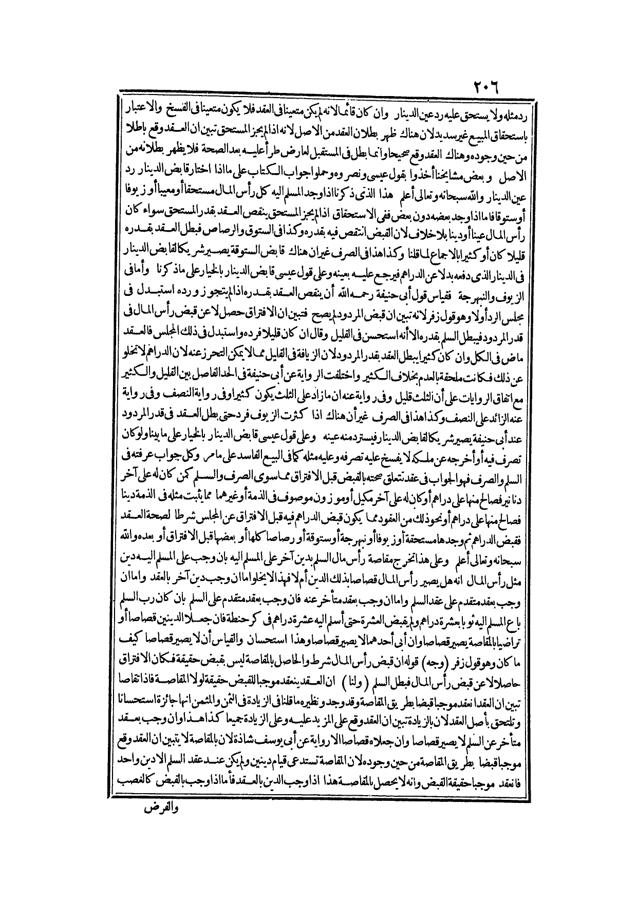 وَأَمَّا فِي الزُّيُوفِ، وَالنَّبَهْرَجَةِ فَقِيَاسُ قَوْلِ أَبِي حَنِيفَةَ - رَحِمَهُ اللَّهُ - أَنْ يُنْقَصَ الْعَقْدُ بِقَدْرِهِ إذَا لَمْ يَتَجَوَّزْ، وَرَدَّهُ - اسْتَبْدَلَ فِي مَجْلِسِ الرَّدِّ أَوْ لَا - وَهُوَ قَوْلُ زُفَرَ؛ لِأَنَّهُ تَبَيَّنَ أَنَّ قَبْضَ الْمَرْدُودِ لَمْ يَصِحَّ فَتَبَيَّنَ أَنَّ الِافْتِرَاقَ حَصَلَ لَا عَنْ قَبْضِ رَأْسِ الْمَالِ فِي قَدْرِ الْمَرْدُودِ فَيَبْطُلُ السَّلَمُ بِقَدْرِهِ، إلَّا أَنَّهُ اسْتَحْسَنَ فِي الْقَلِيلِ، وَقَالَ: إنْ كَانَ قَلِيلًا فَرَدَّهُ وَاسْتَبْدَلَ فِي ذَلِكَ الْمَجْلِسِ فَالْعَقْدُ مَاضٍ فِي الْكُلِّ، وَإِنْ كَانَ كَثِيرًا يَبْطُلُ الْعَقْدُ بِقَدْرِ الْمَرْدُودِ؛ لِأَنَّ الزِّيَافَةَ فِي الْقَلِيلِ مِمَّا لَا يُمْكِنُ التَّحَرُّزُ عَنْهُ؛ لِأَنَّ الدَّرَاهِمَ لَا تَخْلُو عَنْ ذَلِكَ فَكَانَتْ مُلْحَقَةً بِالْعَدَمِ، بِخِلَافِ الْكَثِيرِ وَاخْتَلَفَتْ الرِّوَايَةُ عَنْ أَبِي حَنِيفَةَ فِي الْحَدِّ الْفَاصِلِ بَيْنَ الْقَلِيلِ وَالْكَثِيرِ مَعَ اتِّفَاقِ الرِّوَايَاتِ عَلَى أَنَّ الثُّلُثَ قَلِيلٌ وَفِي رِوَايَةٍ عَنْهُ أَنَّ مَا زَادَ عَلَى الثُّلُثِ يَكُونُ كَثِيرًا، وَفِي رِوَايَةٍ النِّصْفِ، وَفِي رِوَايَةٍ عَنْهُ الزَّائِدُ عَلَى النِّصْفِ، وَكَذَا هَذَا فِي الصَّرْفِ غَيْرَ أَنَّ هُنَاكَ إذَا كَثُرَتْ الزُّيُوفُ فَرَدَّ حَتَّى بَطَلَ الْعَقْدُ فِي قَدْرِ الْمَرْدُودِ عِنْدَ أَبِي حَنِيفَةَ يَصِيرُ شَرِيكًا لِقَابِضِ الدِّينَارِ فَيَسْتَرِدُّ مِنْهُ عَيْنَهُ.
