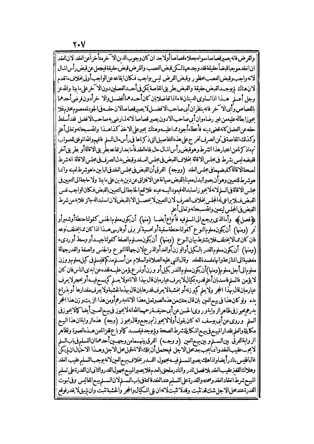 وَالْقَرْضِ فَإِنَّهُ يَصِيرُ قِصَاصًا، سَوَاءٌ جَعَلَاهُ قِصَاصًا، أَوْ لَا بَعْدَ أَنْ كَانَ وُجُوبُ الدَّيْنِ الْآخَرِ مُتَأَخِّرًا عَنْ الْعَقْدِ؛ لِأَنَّ الْعَقْدَ إنْ انْعَقَدَ مُوجِبًا قَبْضًا حَقِيقَةً فَقَدْ وُجِدَ هَهُنَا لَكِنَّ قَبْضَ الْغَصْبِ وَالْقَرْضِ قَبْضٌ حَقِيقَةً فَيُجْعَلُ عَنْ قَبْضِ رَأْسِ الْمَالِ؛ لِأَنَّهُ وَاجِبٌ، وَقَبْضُ الْغَصْبِ مَحْظُورٌ وَقَبْضُ الْقَرْضِ لَيْسَ بِوَاجِبٍ فَكَانَ إيقَاعُهُ عَنْ الْوَاجِبِ أَوْلَى، بِخِلَافِ مَا تَقَدَّمَ؛ لِأَنَّ هُنَاكَ لَمْ يُوجَدْ الْقَبْضُ حَقِيقَةً، وَالْقَبْضُ بِطَرِيقِ الْمُقَاصَّةِ يُمْكِنُ فِي أَحَدِ الْفَصْلَيْنِ دُونَ الْآخَرِ عَلَى مَا بَيَّنَّا، وَاَللَّهُ عَزَّ وَجَلَّ أَعْلَمُ.