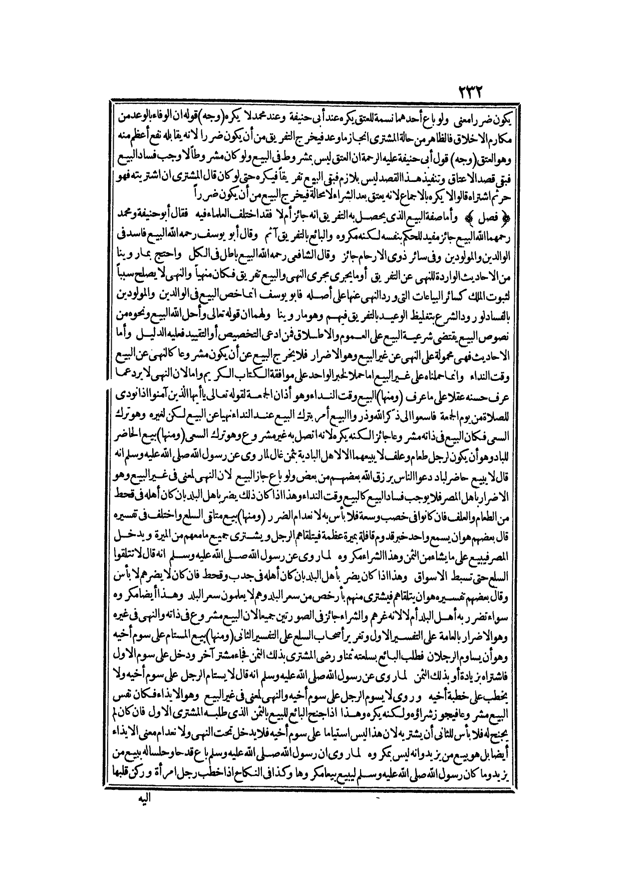 وَأَمَّا الْأَحَادِيثُ فَهِيَ مَحْمُولَةٌ عَلَى النَّهْيِ عَنْ غَيْرِ الْبَيْعِ وَهُوَ الْإِضْرَارُ فَلَا يَخْرُجُ الْبَيْعُ عَنْ أَنْ يَكُونَ مَشْرُوعًا كَالنَّهْيِ عَنْ الْبَيْعِ وَقْتَ النِّدَاءِ، وَإِنَّمَا حَمَلْنَاهُ عَلَى غَيْرِ الْبَيْعِ إمَّا حَمْلًا لِخَبَرِ الْوَاحِدِ عَلَى مُوَافَقَةِ الْكِتَابِ الْكَرِيمِ، وَإِمَّا لِأَنَّ النَّهْيَ لَا يَرِدُ عَمَّا عُرِفَ حُسْنُهُ عَقْلًا عَلَى مَا عُرِفَ.