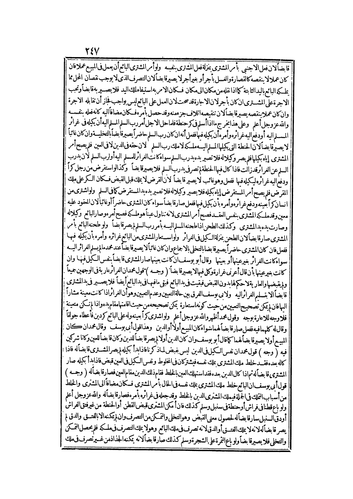 وَلَوْ أَمَرَ الْمُشْتَرِي الْبَائِعَ أَنْ يَعْمَلَ فِي الْمَبِيعِ عَمَلًا فَإِنْ كَانَ عَمَلًا لَا يُنْقِصُهُ كَالْقِصَارَةِ، وَالْغَسْلِ بِأَجْرٍ، أَوْ بِغَيْرِ أَجْرٍ لَا يَصِيرُ قَابِضًا؛ لِأَنَّ التَّصَرُّفَ الَّذِي لَا يُوجِبُ نُقْصَانَ الْمَحَلِّ مِمَّا يَمْلِكُهُ الْبَائِعُ بِالْيَدِ الثَّابِتَةِ كَمَا إذَا نَقَلَهُ مِنْ مَكَان إلَى مَكَان فَكَانَ الْأَمْرُ بِهِ اسْتِيفَاءً لِمِلْكِ الْيَدِ فَلَا يَصِيرُ بِهِ قَابِضًا، وَتَجِبُ الْأُجْرَةُ عَلَى الْمُشْتَرِي إنْ كَانَ بِأَجْرٍ؛ لِأَنَّ الْإِجَارَةَ قَدْ صَحَّتْ؛ لِأَنَّ الْعَمَلَ عَلَى الْبَائِعِ لَيْسَ بِوَاجِبٍ فَجَازَ أَنْ تُقَابِلَهُ الْأُجْرَةُ، وَإِنْ كَانَ عَمَلًا يُنْقِصُهُ يَصِيرُ قَابِضًا؛ لِأَنَّ تَنْقِيصَهُ إتْلَافُ جُزْءٍ مِنْهُ، وَقَدْ حَصَلَ بِأَمْرِهِ فَكَانَ مُضَافًا إلَيْهِ كَأَنَّهُ فَعَلَهُ بِنَفْسِهِ، وَاَللَّهُ عَزَّ وَجَلَّ أَعْلَمُ.