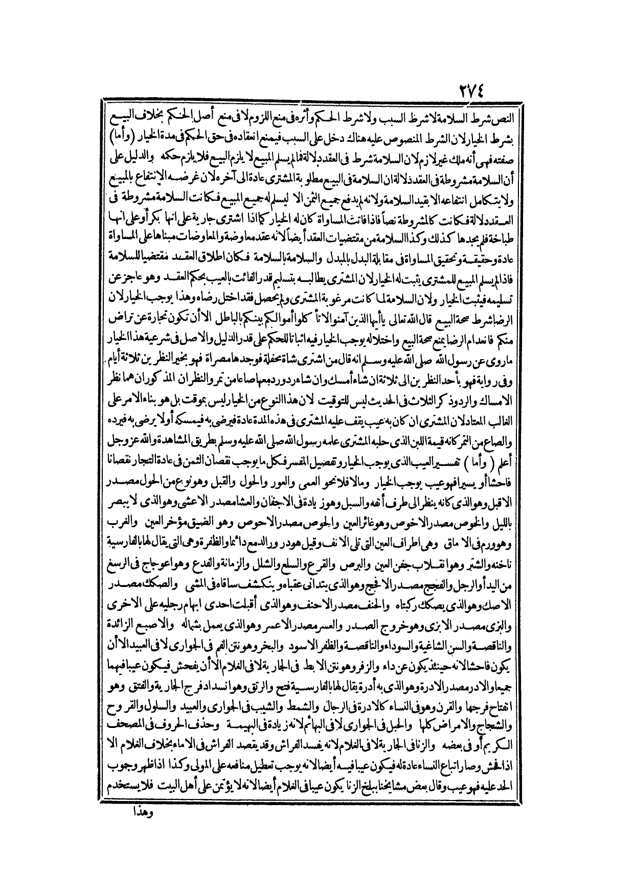 النَّصِّ شَرْطُ السَّلَامَةِ لَا شَرْطُ السَّبَبِ، وَلَا شَرْطُ الْحُكْمِ، وَأَثَرُهُ فِي مَنْعِ اللُّزُومِ لَا فِي مَنْعِ أَصْلِ الْحُكْمِ بِخِلَافِ الْبَيْعِ بِشَرْطِ الْخِيَارِ؛ لِأَنَّ الشَّرْطَ الْمَنْصُوصَ عَلَيْهِ هُنَاكَ دَخَلَ عَلَى السَّبَبِ، فَيَمْنَعُ انْعِقَادَهُ فِي حَقِّ الْحُكْمِ فِي مُدَّةِ الْخِيَارِ.