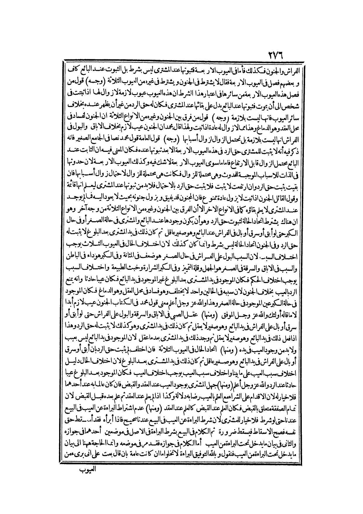 (وَجْهُ) قَوْلِ مَنْ فَصَّلَ هَذِهِ الْعُيُوبَ الْأَرْبَعَةَ مِنْ سَائِرِهَا فِي اعْتِبَارِ هَذَا الشَّرْطِ أَنَّ هَذِهِ الْعُيُوبَ عُيُوبٌ لَازِمَةٌ لَا زَوَالَ لَهَا إذَا ثَبَتَتْ فِي شَخْصٍ إلَى أَنْ يَمُوتَ، فَثُبُوتُهَا عِنْدَ الْبَائِعِ يَدُلُّ عَلَى بَقَائِهَا عِنْدَ الْمُشْتَرِي، فَكَانَ لَهُ حَقُّ الرَّدِّ مِنْ غَيْرِ أَنْ يَظْهَرَ عِنْدَهُ بِخِلَافِ سَائِرِ الْعُيُوبِ، فَإِنَّهَا لَيْسَتْ بِلَازِمَةٍ (وَجْهُ) قَوْلِ مَنْ فَرَّقَ بَيْنَ الْجُنُونِ، وَغَيْرِهِ مِنْ الْأَنْوَاعِ الثَّلَاثَةِ أَنَّ الْجُنُونَ لِفَسَادٍ فِي مَحَلِّ الْعَقْدِ، وَهُوَ الدِّمَاغُ، وَهَذَا مِمَّا لَا زَوَالَ لَهُ عَادَةً إذَا ثَبَتَ، وَلِهَذَا قَالَ مُحَمَّدٌ: إنَّ الْجُنُونَ عَيْبٌ لَازِمٌ بِخِلَافِ الْإِبَاقِ، وَالْبَوْلِ فِي الْفِرَاشِ أَنَّهَا لَيْسَتْ بِلَازِمَةٍ بَلْ تَحْتَمِلُ الزَّوَالَ لِزَوَالِ أَسْبَابِهَا.
