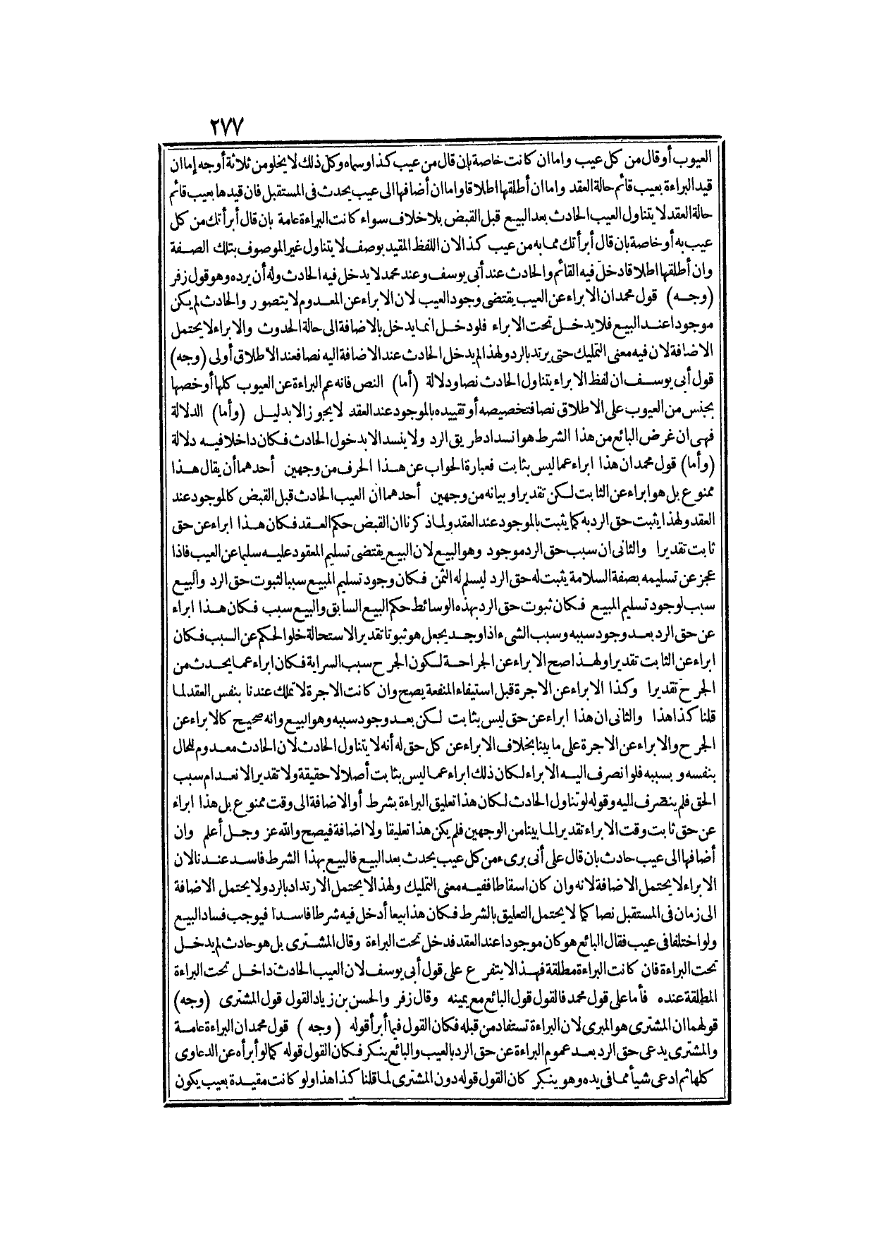 (وَجْهُ) قَوْلِ مُحَمَّدٍ أَنَّ الْإِبْرَاءَ عَنْ الْعَيْبِ يَقْتَضِي، وُجُودَ الْعَيْبِ؛ لِأَنَّ الْإِبْرَاءَ عَنْ الْمَعْدُومِ لَا يُتَصَوَّرُ، وَالْحَادِثُ لَمْ يَكُنْ مَوْجُودًا عِنْدَ الْبَيْعِ، فَلَا يَدْخُلُ تَحْتَ الْإِبْرَاءِ، فَلَوْ دَخَلَ إنَّمَا يَدْخُلُ بِالْإِضَافَةِ إلَى حَالَةِ الْحُدُوثِ، وَالْإِبْرَاءُ لَا يَحْتَمِلُ الْإِضَافَةَ؛ لِأَنَّ فِيهِ مَعْنَى التَّمْلِيكِ حَتَّى يَرْتَدَّ بِالرَّدِّ، وَلِهَذَا لَمْ يَدْخُلْ الْحَادِثُ عِنْدَ الْإِضَافَةِ إلَيْهِ نَصًّا، فَعِنْدَ الْإِطْلَاقِ أَوْلَى (وَجْهُ) قَوْلِ أَبِي يُوسُفَ أَنَّ لَفْظَ الْإِبْرَاءِ يَتَنَاوَلُ الْحَادِثَ نَصًّا، وَدَلَالَةً (أَمَّا) النَّصُّ، فَإِنَّهُ عَمَّ الْبَرَاءَةَ عَنْ الْعُيُوبِ كُلِّهَا أَوْ خَصَّهَا بِجِنْسٍ مِنْ الْعُيُوبِ عَلَى الْإِطْلَاقِ نَصًّا، فَتَخْصِيصُهُ أَوْ تَقْيِيدُهُ بِالْمَوْجُودِ عِنْدَ الْعَقْدِ لَا يَجُوزُ إلَّا بِدَلِيلٍ (وَأَمَّا) الدَّلَالَةُ، فَهِيَ أَنَّ غَرَضَ الْبَائِعِ مِنْ هَذَا الشَّرْطِ هُوَ انْسِدَادُ طَرِيقِ الرَّدِّ، وَلَا يَنْسَدُّ إلَّا بِدُخُولِ الْحَادِثِ، فَكَانَ دَاخِلًا فِيهِ دَلَالَةً.