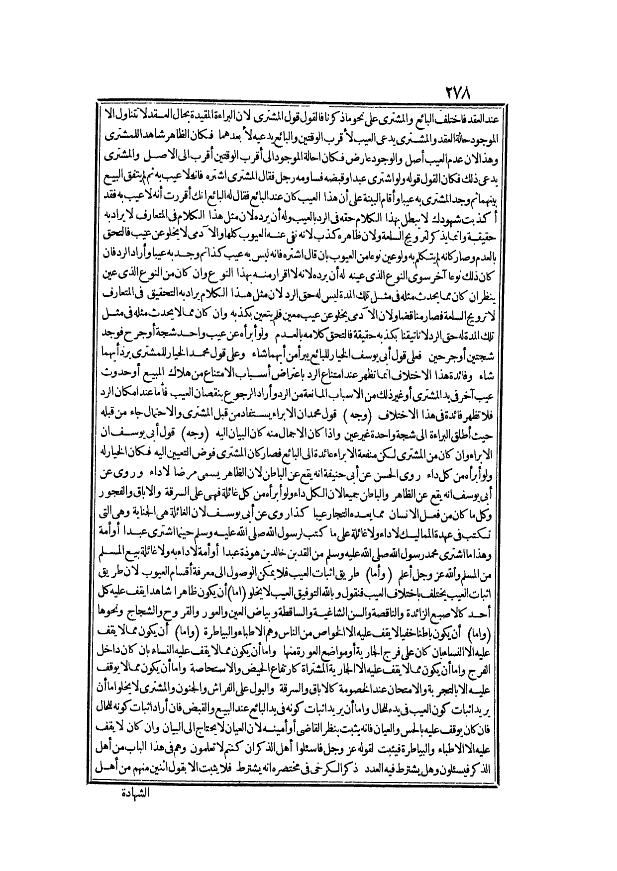 (وَإِمَّا) أَنْ يَكُونَ مِمَّا لَا يَقِفُ عَلَيْهِ إلَّا النِّسَاءُ بِأَنْ كَانَ عَلَى فَرْجِ الْجَارِيَةِ أَوْ مَوَاضِعِ الْعَوْرَةِ مِنْهَا، وَإِمَّا أَنْ يَكُونَ مِمَّا لَا يَقِفُ عَلَيْهِ النِّسَاءُ بِأَنْ كَانَ دَاخِلَ الْفَرْجِ، وَإِمَّا أَنْ يَكُونَ مِمَّا لَا يَقِفُ عَلَيْهِ إلَّا الْجَارِيَةُ الْمُشْتَرَاةُ كَارْتِفَاعِ الْحَيْضِ وَالِاسْتِحَاضَةِ، وَإِمَّا أَنْ يَكُونَ مِمَّا لَا يُوقَفُ عَلَيْهِ إلَّا بِالتَّجْرِبَةِ وَالِامْتِحَانِ عِنْدَ الْخُصُومَةِ كَالْإِبَاقِ وَالسَّرِقَةِ وَالْبَوْلِ عَلَى الْفِرَاشِ وَالْجُنُونِ وَالْمُشْتَرِي لَا يَخْلُو إمَّا أَنْ يُرِيدَ إثْبَاتَ كَوْنِ الْعَيْبِ فِي يَدِهِ لِلْحَالِ، وَإِمَّا أَنْ يُرِيدَ إثْبَاتَ كَوْنِهِ فِي يَدِ الْبَائِعِ عِنْدَ الْبَيْعِ، وَالْقَبْضِ فَإِنْ أَرَادَ إثْبَاتَ كَوْنِهِ لِلْحَالِ، فَإِنْ كَانَ يُوقَفُ عَلَيْهِ بِالْحِسِّ وَالْعِيَانِ، فَإِنَّهُ يَثْبُتُ بِنَظَرِ الْقَاضِي أَوْ أَمِينِهِ؛ لِأَنَّ الْعَيَّانَ لَا يَحْتَاجُ إلَى الْبَيَانِ، وَإِنْ كَانَ لَا يَقِفُ عَلَيْهِ إلَّا الْأَطِبَّاءُ وَالْبَيَاطِرَةُ، فَيَثْبُتُ لِقَوْلِهِ عَزَّ وَجَلَّ {فَاسْأَلُوا أَهْلَ الذِّكْرِ إِنْ كُنْتُمْ لا تَعْلَمُونَ} [النحل: 43] ، وَهُمْ فِي هَذَا الْبَابِ مِنْ أَهْلِ الذِّكْرِ فَيُسْأَلُونَ، وَهَلْ يُشْتَرَطُ فِيهِ الْعَدَدُ؟ .