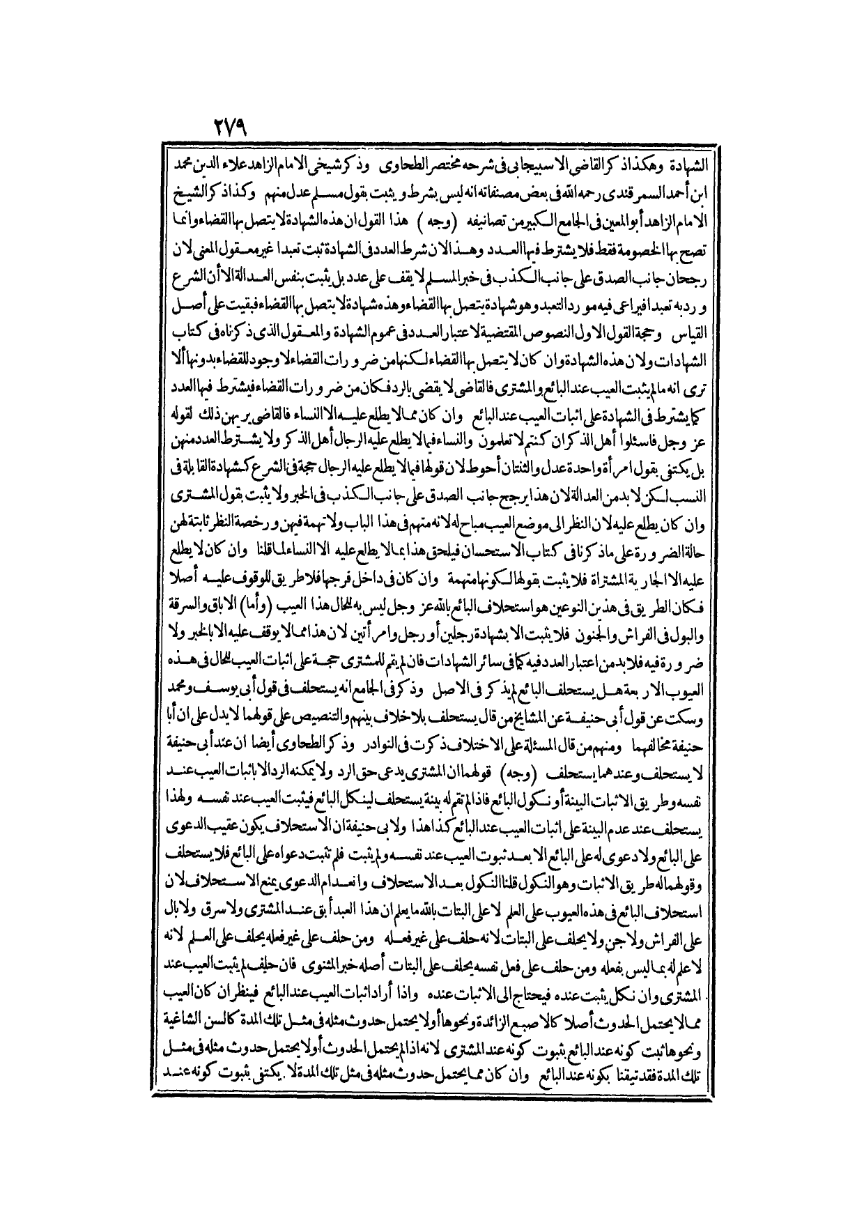 الشَّهَادَةِ، وَهَكَذَا ذَكَرَ الْقَاضِي الْإِسْبِيجَابِيُّ فِي شَرْحِهِ مُخْتَصَرَ الطَّحَاوِيِّ، وَذَكَرَ شَيْخِي الْإِمَامُ الزَّاهِدُ عَلَاءُ الدِّينِ مُحَمَّدٌ بْنُ أَحْمَدَ السَّمَرْقَنْدِيُّ - رَحِمَهُ اللَّهُ - فِي بَعْضِ مُصَنَّفَاتِهِ أَنَّهُ لَيْسَ بِشَرْطٍ، وَيَثْبُتُ بِقَوْلِ مُسْلِمٍ عَدْلٍ مِنْهُمْ، وَكَذَا ذَكَرَ الشَّيْخُ الْإِمَامُ الزَّاهِدُ أَبُو الْمَعِينِ فِي الْجَامِعِ الْكَبِيرِ مِنْ تَصَانِيفِهِ (وَجْهُ) هَذَا الْقَوْلِ أَنَّ هَذِهِ الشَّهَادَةَ لَا يَتَّصِلُ بِهَا الْقَضَاءُ، وَإِنَّمَا تَصِحُّ بِهَا الْخُصُومَةُ، فَقَطْ، فَلَا يُشْتَرَطُ فِيهَا الْعَدَدُ، وَهَذَا؛ لِأَنَّ شَرْطَ الْعَدَدِ فِي الشَّهَادَةِ ثَبَتَ تَعَبُّدًا غَيْرُ مَعْقُولِ الْمَعْنَى؛ لِأَنَّ رُجْحَانَ جَانِبِ الصِّدْقِ عَلَى جَانِبِ الْكَذِبِ فِي خَبَرِ الْمُسْلِمِ لَا يَقِفُ عَلَى عَدَدٍ بَلْ يَثْبُتُ بِنَفْسِ الْعَدَالَةِ إلَّا أَنَّ الشَّرْعَ، وَرَدَ بِهِ تَعَبُّدًا، فَيُرَاعَى فِيهِ مَوْرِدُ التَّعَبُّدِ، وَهُوَ شَهَادَةٌ يَتَّصِلُ بِهَا الْقَضَاءُ، وَهَذِهِ شَهَادَةٌ لَا يَتَّصِلُ بِهَا الْقَضَاءُ، فَبَقِيَتْ عَلَى أَصْلِ الْقِيَاسِ.